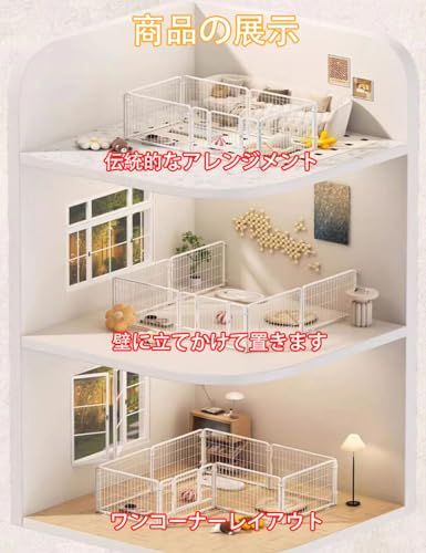 【便利な折りたたみ収納】ペットサークルは簡単に組み立てて折りたたむことができ、使用しないときはスペースを無駄にすることなく折りたたんで保管できます。持ち運びが簡単な軽量設計で、移動や旅行の際に非常に便利です。ペットと快適に過ごすのに最適です。