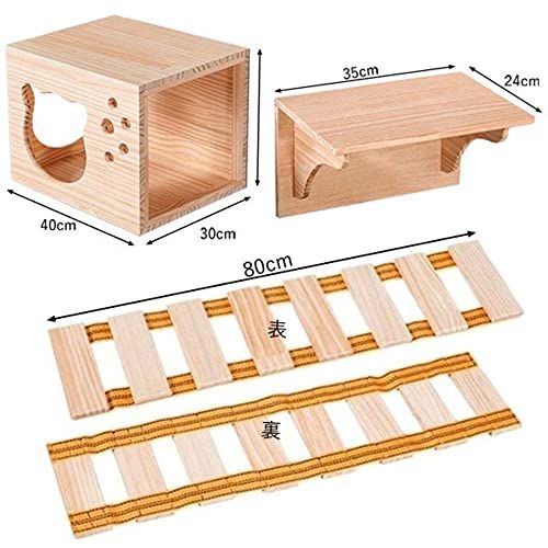 【サイズ】ハウス 幅40高さ30奥行30cm、ステップ 幅35奥行24cm、はしご 長さ80cm【セット内容】ハウス1、ステップ2、爪とぎ1、はしご1【素材】木、麻【付属品】ネジ、コンクリート用アンカープラグ
