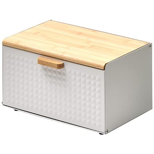 FunFun ブレッドケース ホワイト スクエアタイプ キッチン収納 スパイスラック マグネット アイデア ボックス パンケース 木製 北欧 上開き 前開き 両開き バンブー トースター おしゃれ