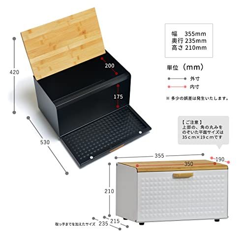 【特徴】パンやシリアル、紅茶などをすっきりとまとめて収納できるシンプルで大容量のブレッドケース。 キッチンカウンターなどで雑然としがちなパンやお菓子、調味料など生活感のあふれる雑貨を隠してキッチンをすっきり見せ。 シンプルなデザインでどんなキッチンにも溶け込み、おしゃれに生活感をオフしてくれます。