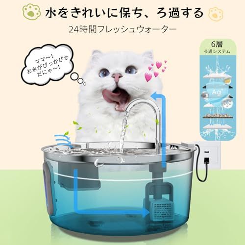 【6層銀イオン精密フィルターシステム】GERYTOR独自開発の多段階浄化システムは、微細なホコリ・浮き毛・微小異物を確実に捕捉。銀イオン技術による衛生維持効果で細菌繁殖を抑制し、水の粘つきを防ぎます。精密ろ過機能搭載で、常にクリアでサラサラな水質を維持。 ※ご使用前には付属の活性炭を5分間水浸しし、微粉末が完全に溶けるまでお待ちください。