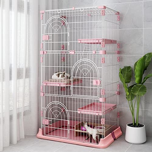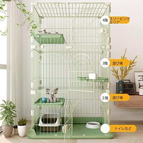 【大型のネコちゃんでも広々快適】十分なスペースがあり、ケージにトイレ、クッション、ワイヤーにおもちゃや水飲み器などなどのアイテムを設置ことができ、留守番中時にも猫ちゃんがケージの中でのんびりでリラックスで過ごせて、窮屈な思いをさせません。
