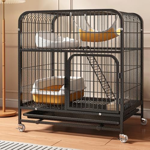 【組立簡単】追加工具不要。組み立ては簡単で、ケージは広々として快適で、掃除もしやすいです。キャスター付き、移動が簡単で、掃除がしやすいように固定できる。 ケージは取り外し可能で、持ち運びやコンパクトな収納にも便利です。様々なペット用品を入れます。