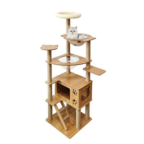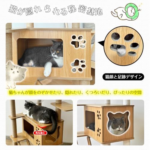 【遊び心満載の多機能設計】展望台、隠れ家、ポンポンおもちゃ、ハンモック、広々ベースなど機能充実。上下運動、爪とぎ、お昼寝、遊びがこれ一台で完結する、猫ちゃんのための楽しい空間です。