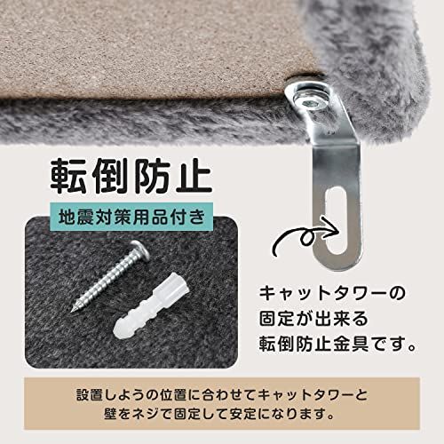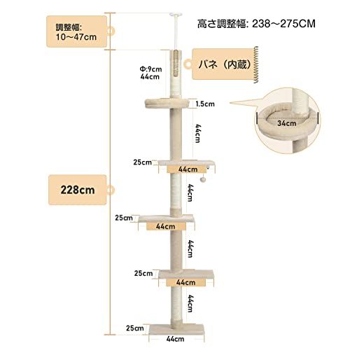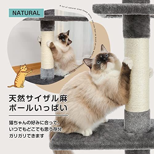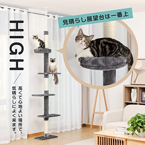 PETEPELA(ぺテぺラ) キャットタワー 突っ張り スリム 突っ張り棒 取り付け簡単 猫タワー ツッパリ 省スペース 麻紐 爪とぎ ボンボンおもちゃ 運動不足解消 多頭飼い - グレー 高さ調整幅238-275cm 44a33223