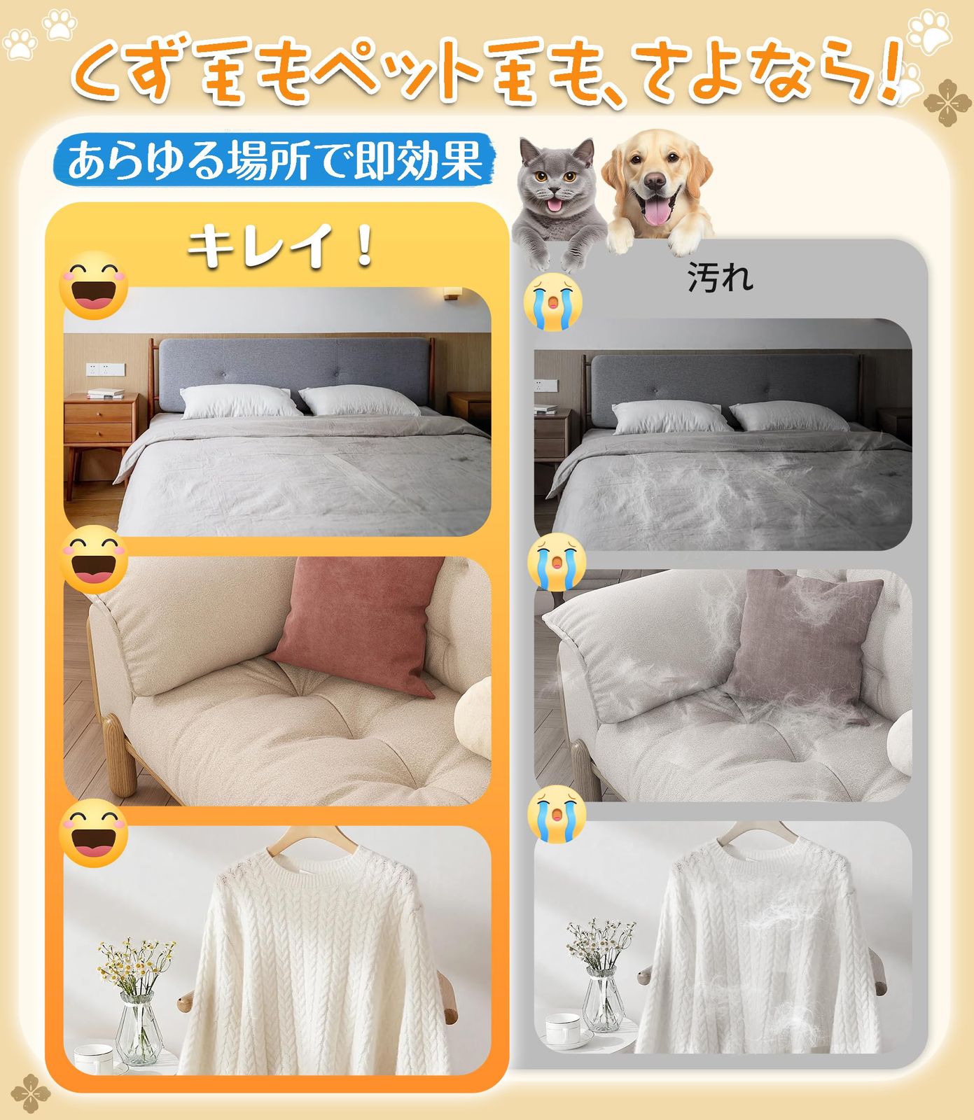 【繰り返す利用】洗濯お手入れ簡単で、繰り返し使えるからとっても経済的。毎日使ってもへたれにくく、毛取り生活がもっと楽しくなっちゃう♪