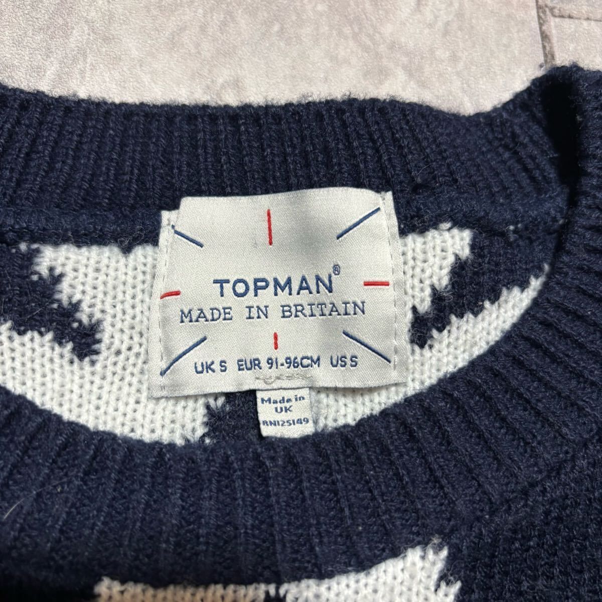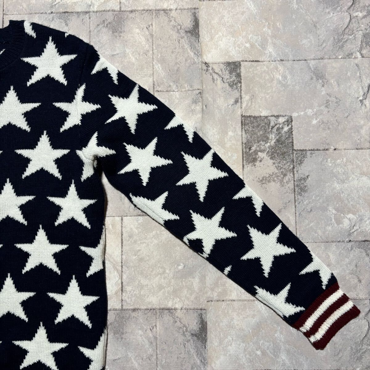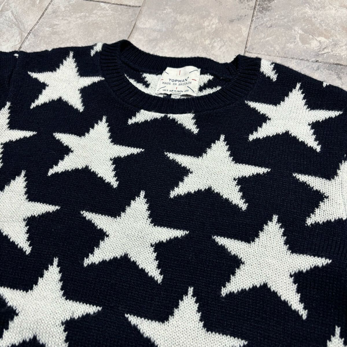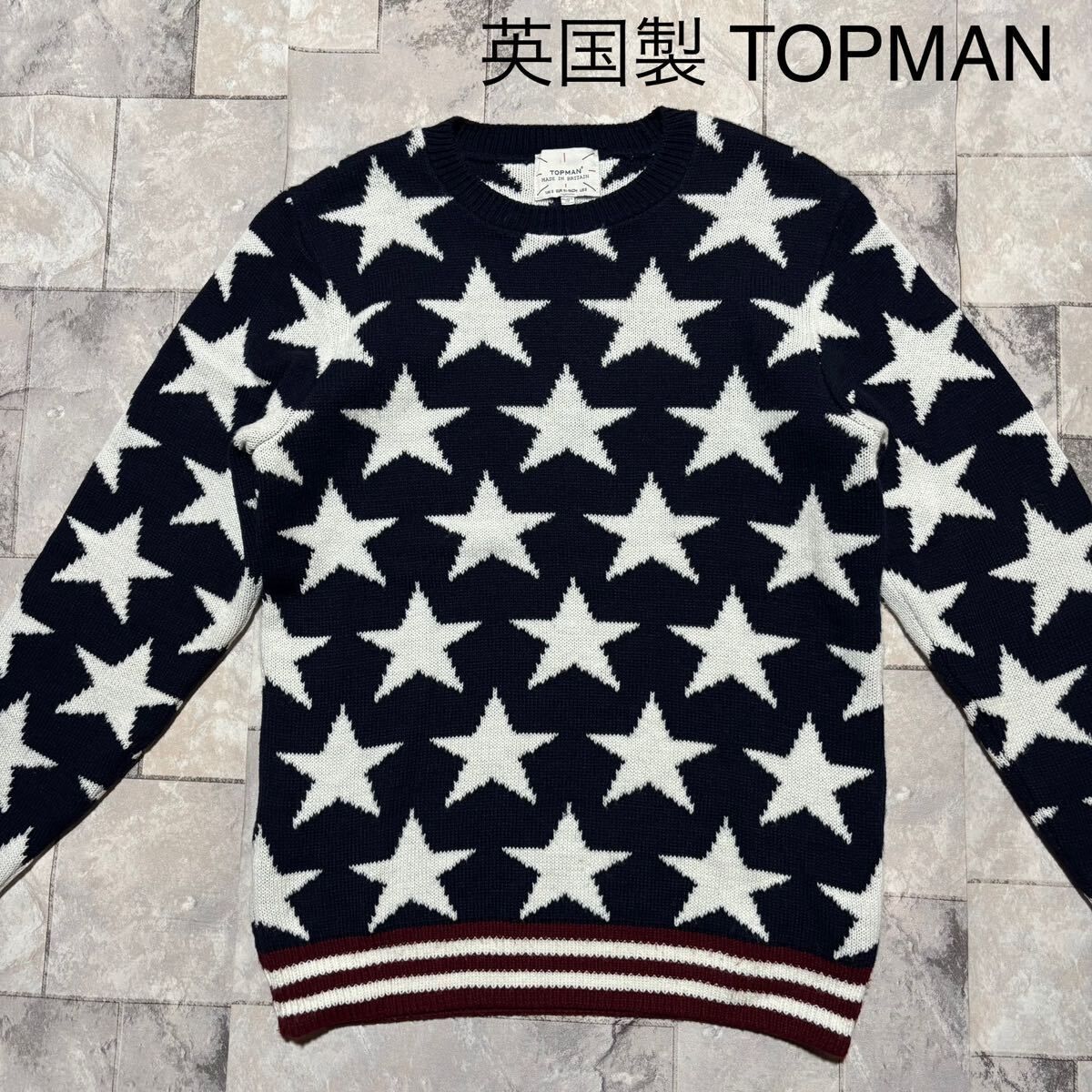 英国製 TOPMAN トップマン ニット セーター 長袖 総柄 スター 星 海外企画 イギリス製 ネイビー サイズS 玉FS1700