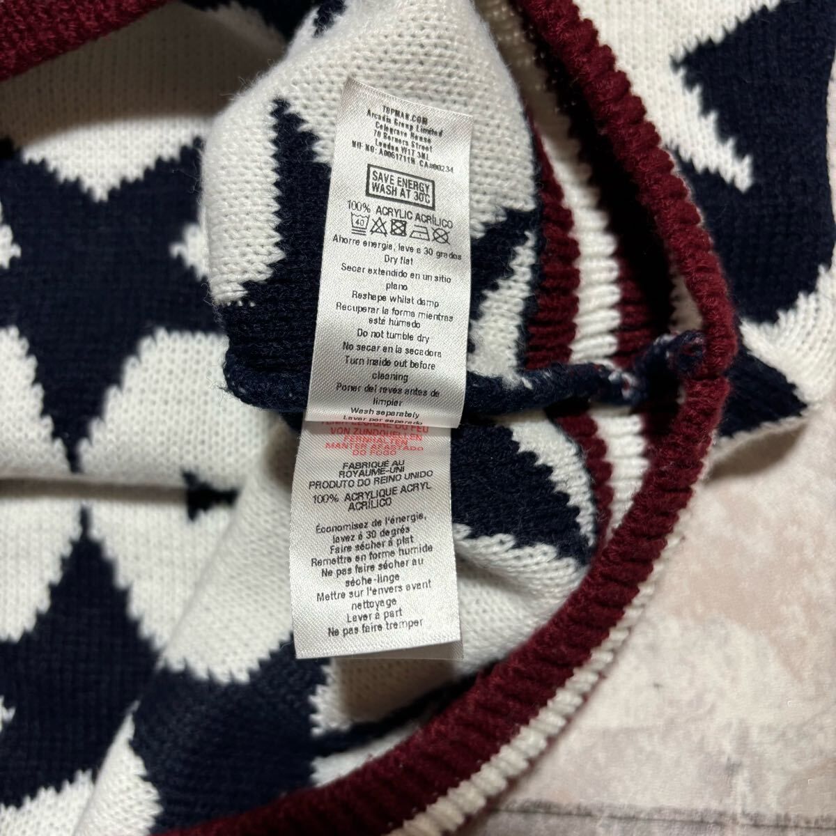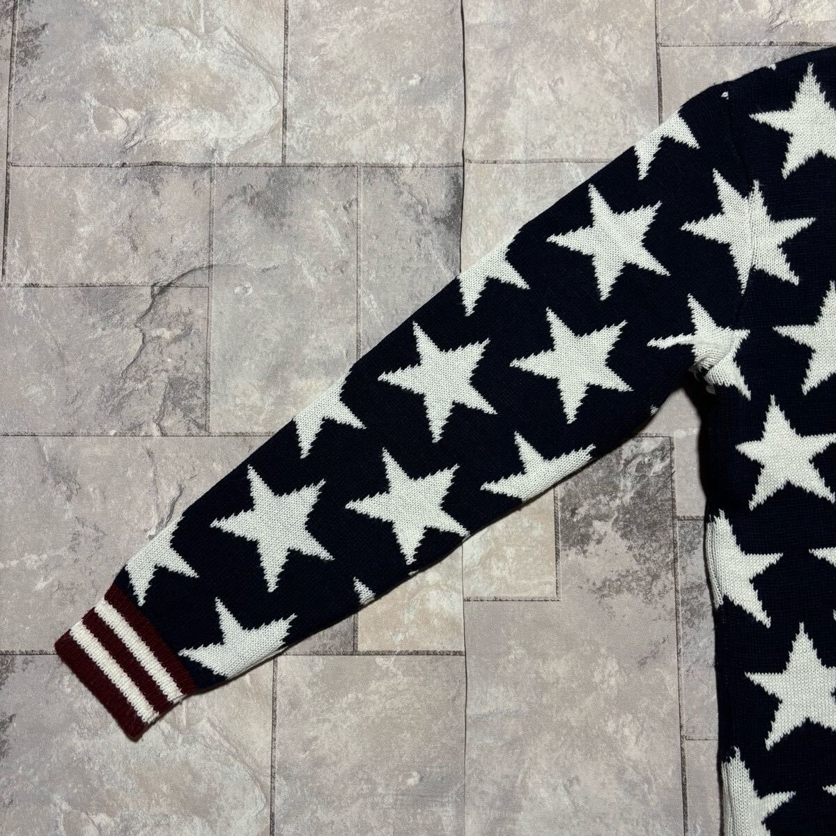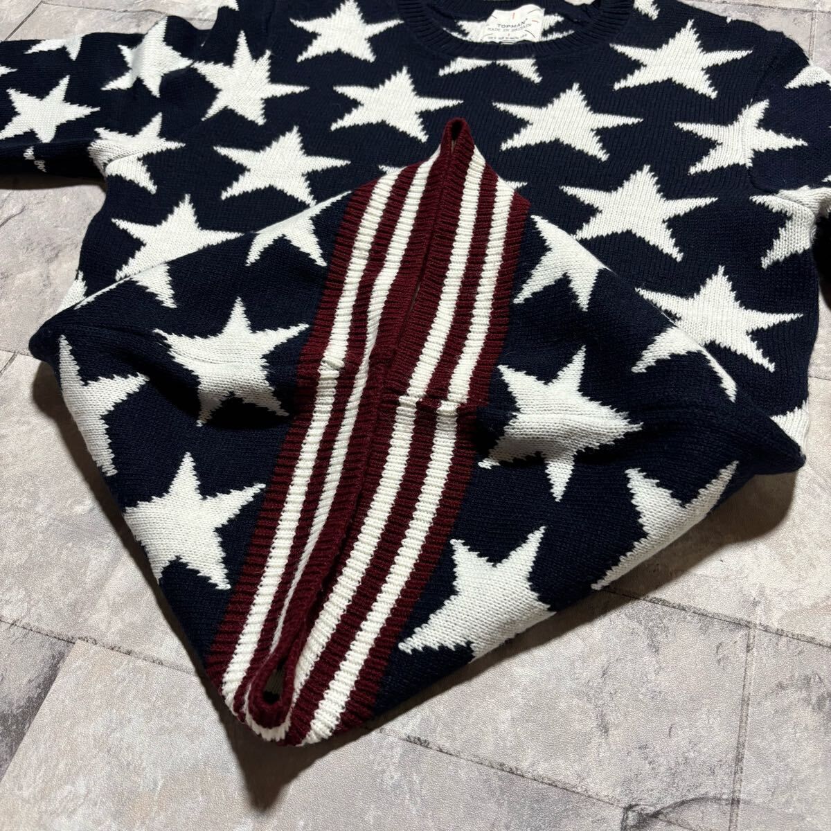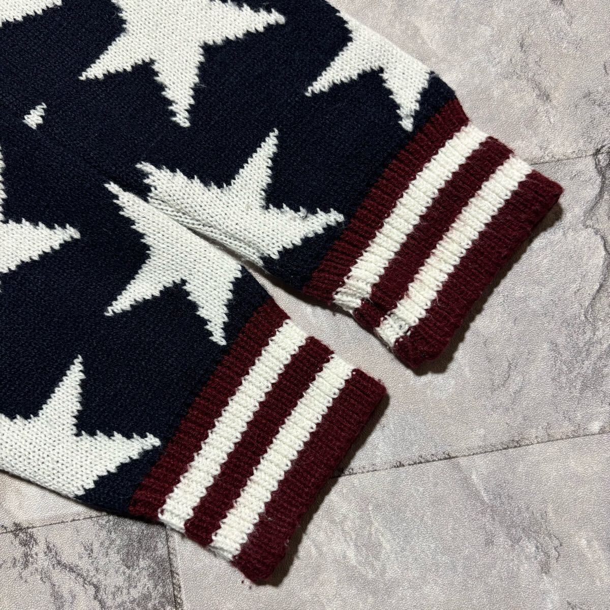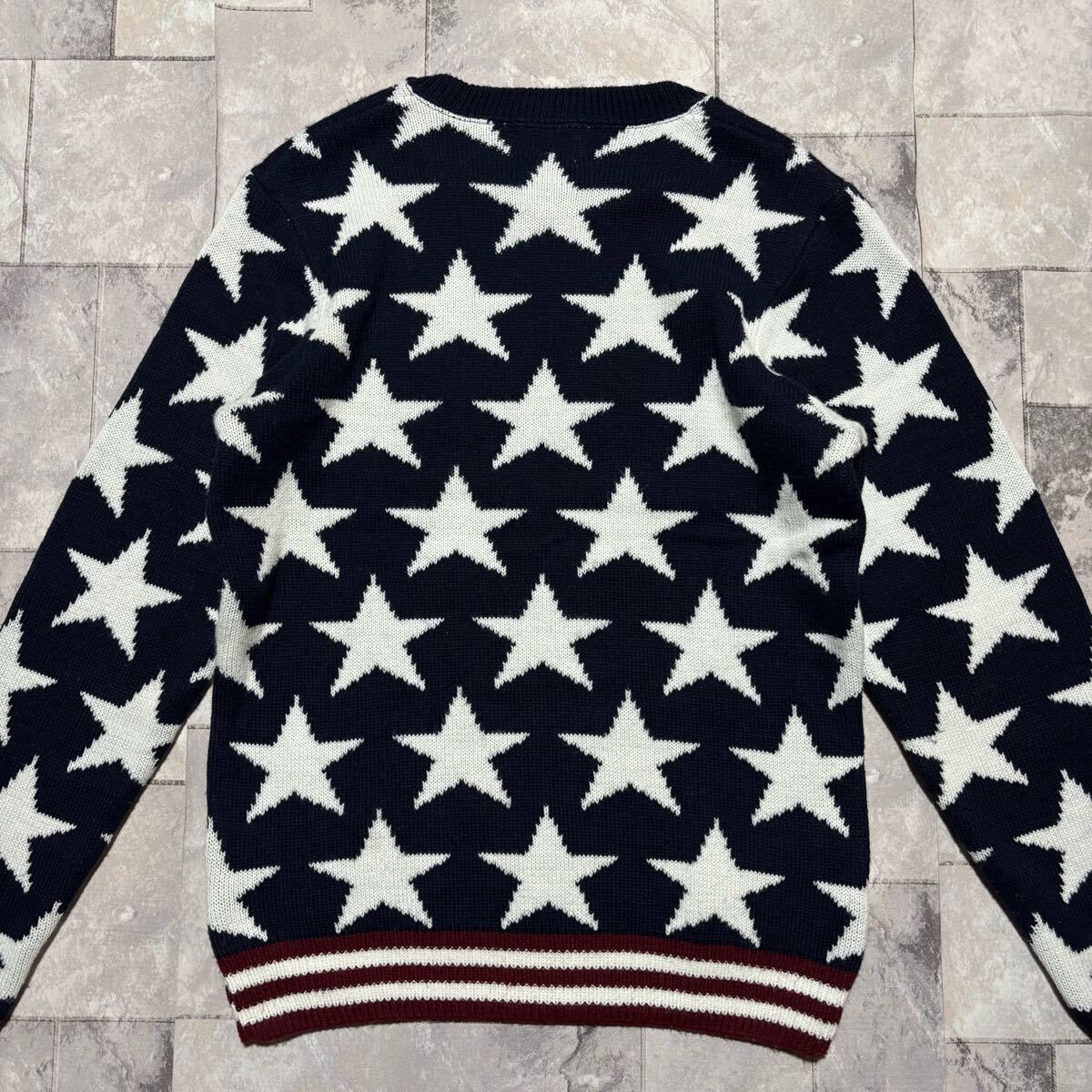英国製 TOPMAN トップマン ニット セーター 長袖 総柄 スター 星 海外企画 イギリス製 ネイビー サイズS 玉FS1700