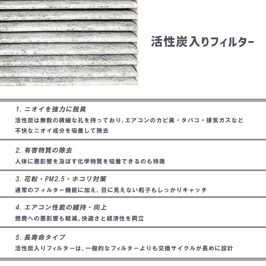 このエアコンフィルターは活性炭入りの高性能3層構造。