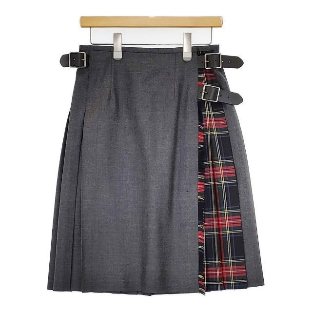 5-1020T∞O'NEIL OF DUBLIN プリーツ ラップ キルト ウール スカート グレー オニールオブダブリン 269883