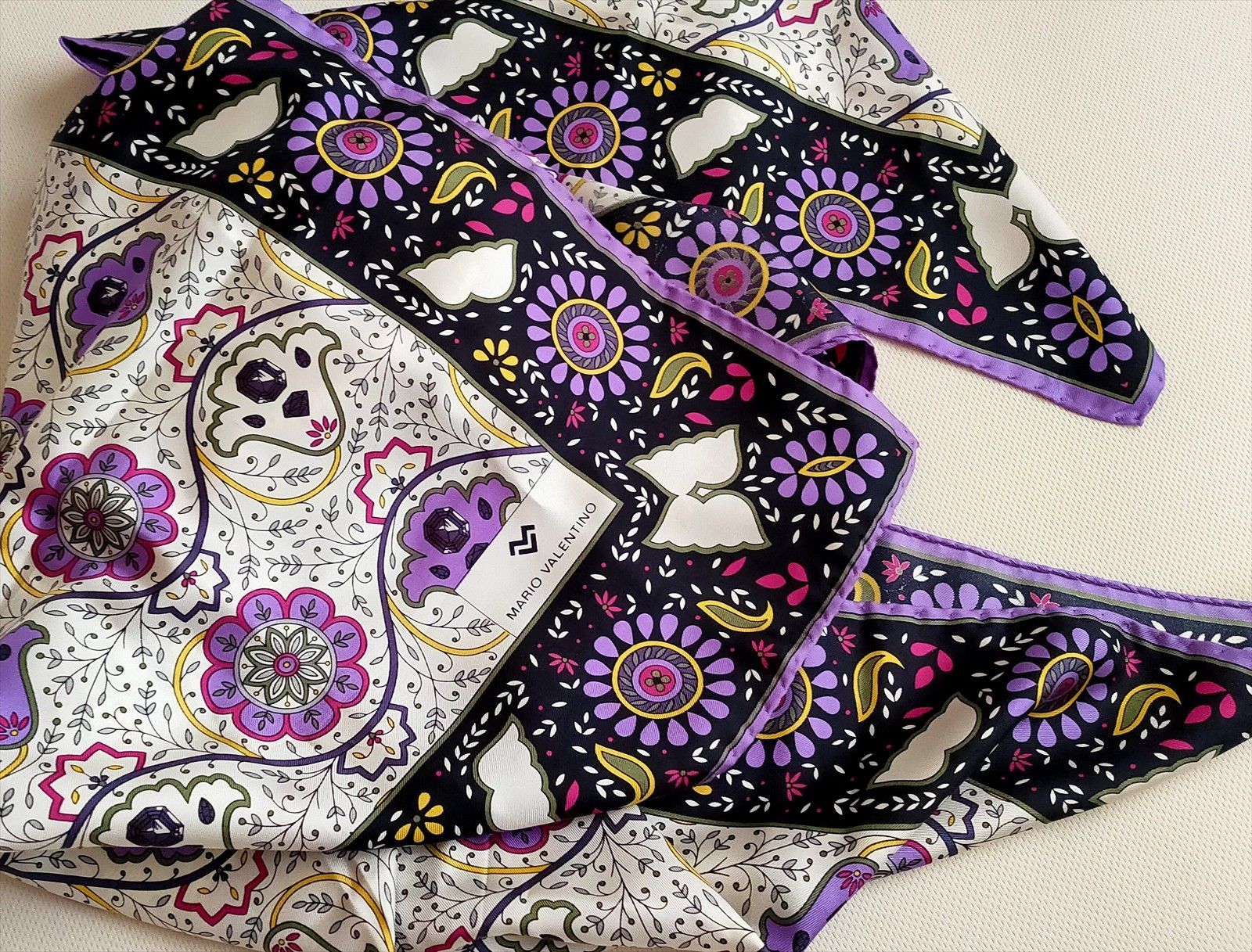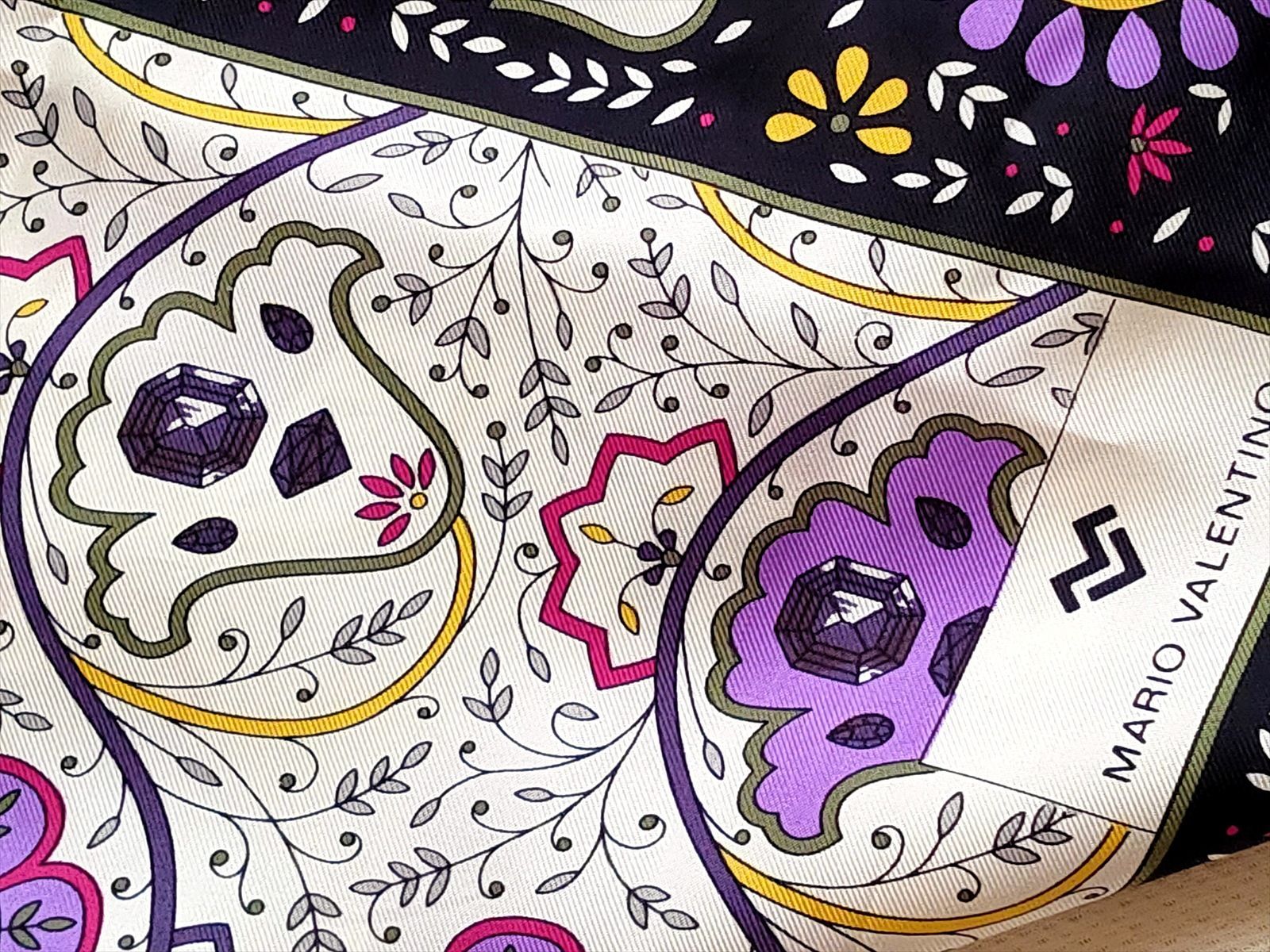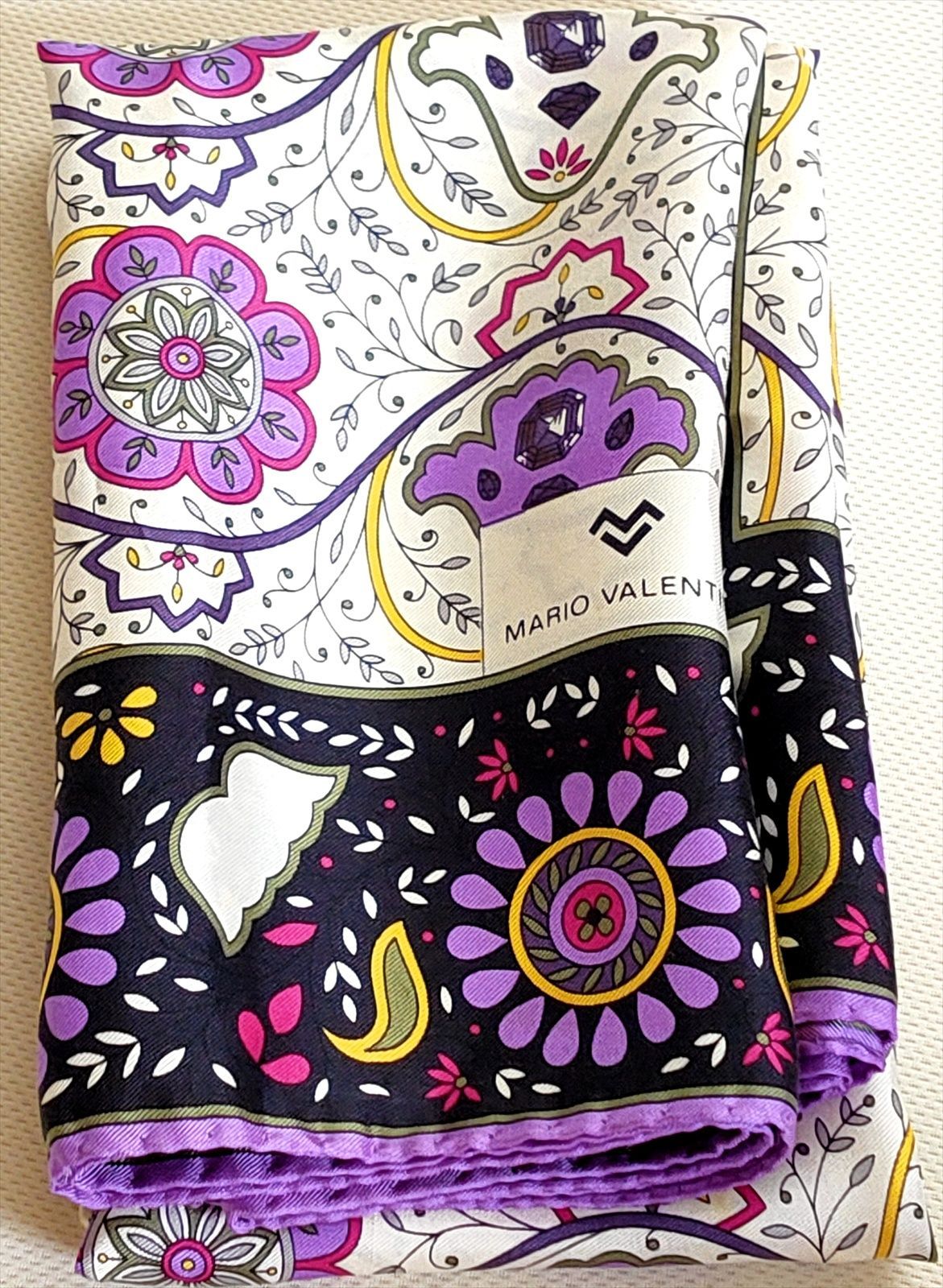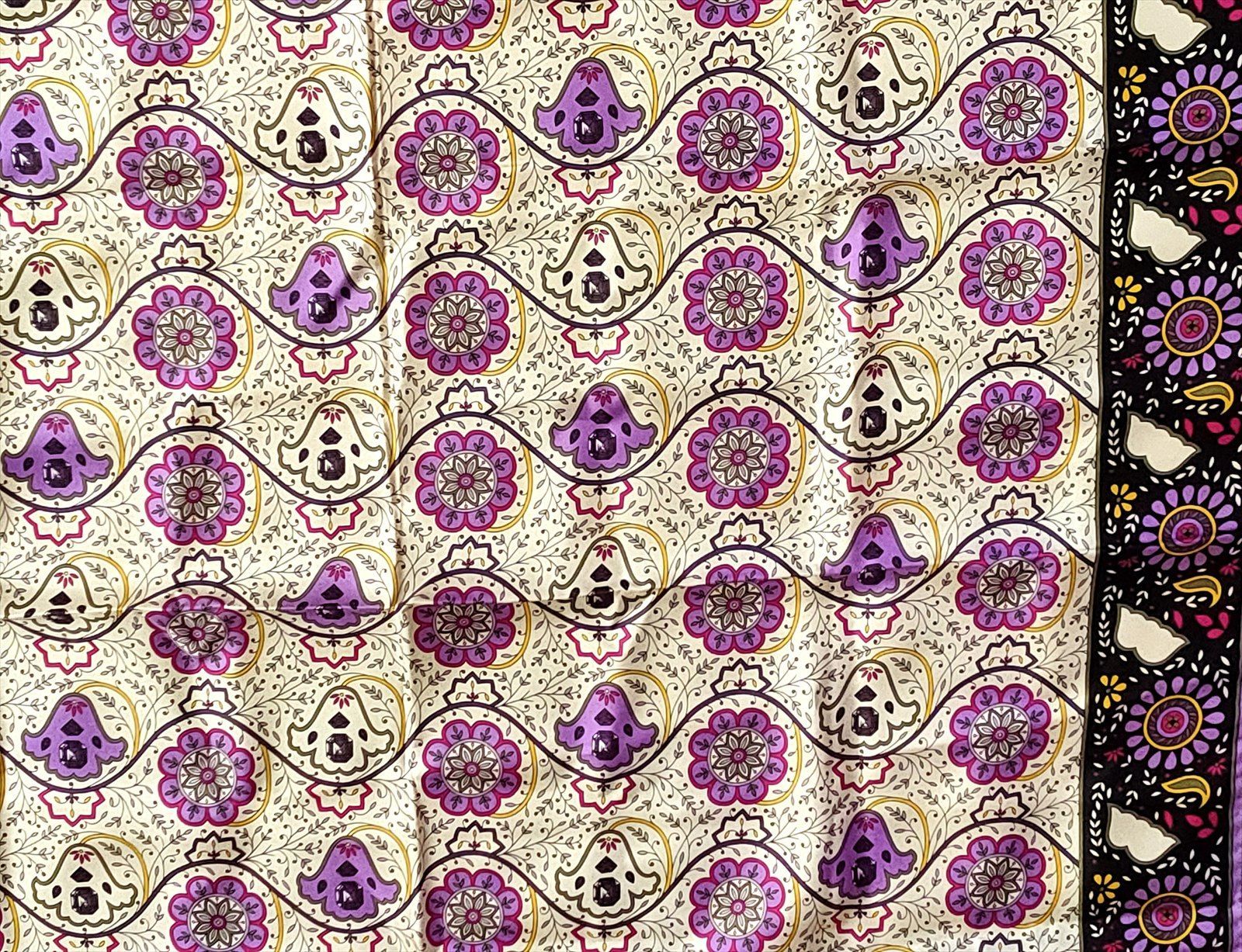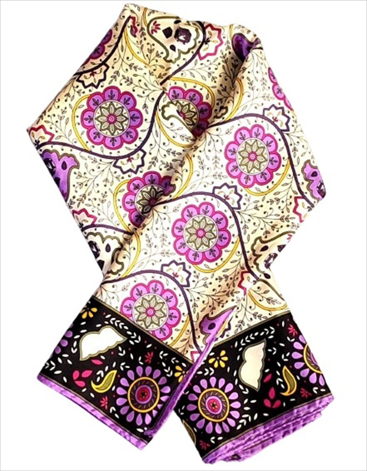 パープルを基調にした花柄のスカーフです。