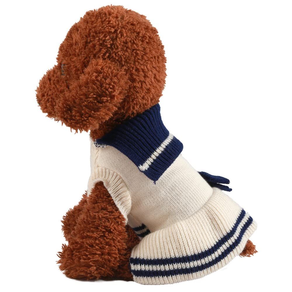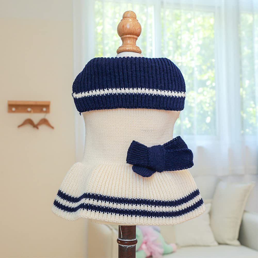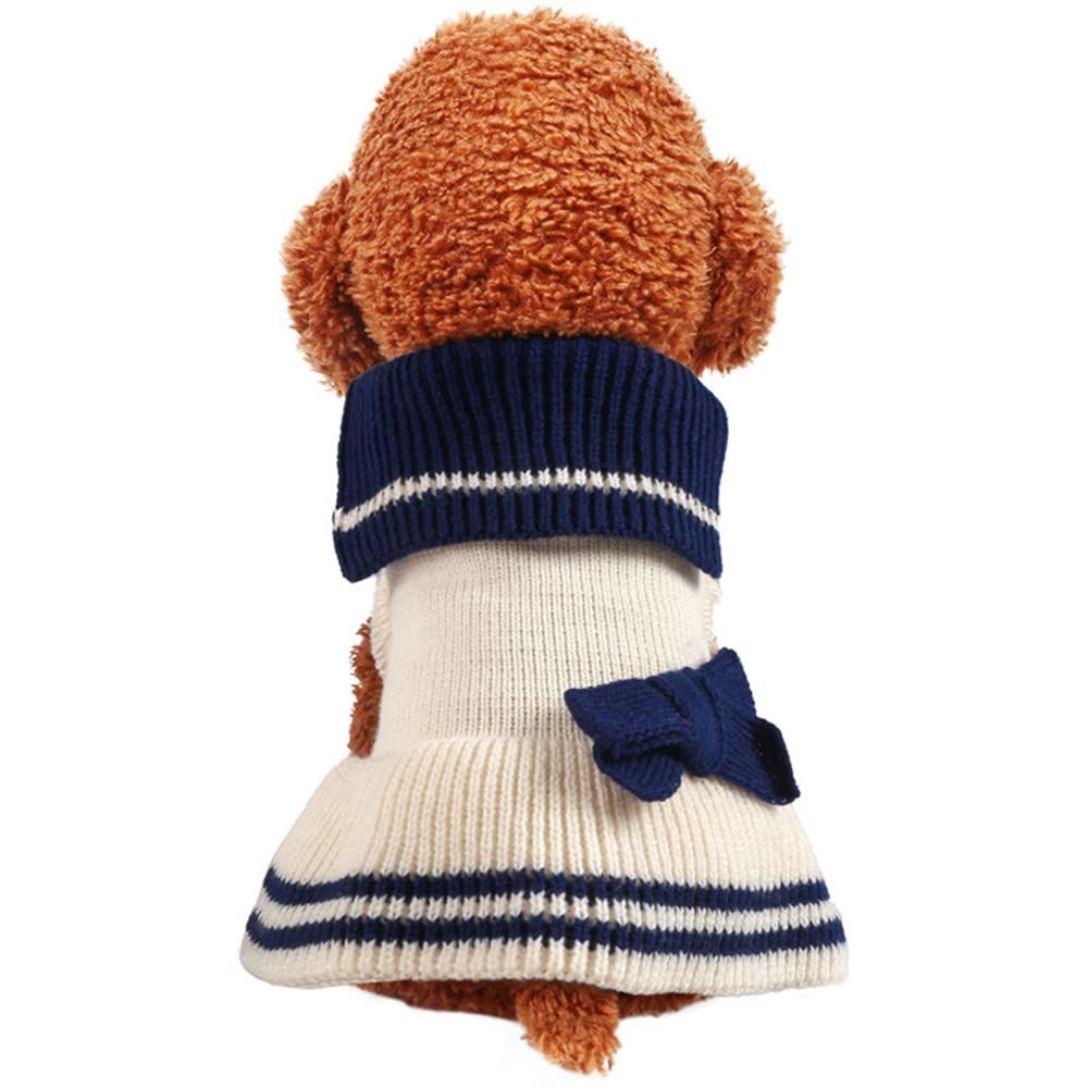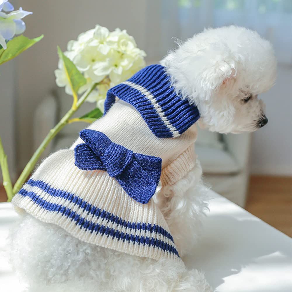 YOASONEK ペット服 かわいい ドレス 犬 服 ワンピース 秋冬 スカート 犬猫用 ニット セーター オシャレ 可愛い 小型犬 中型犬 お姫様 犬洋服 お散歩お出かけ ドッグウェア 記念撮影 誕生日 クリスマス 猫服 女の子 防寒 (S ブルー)