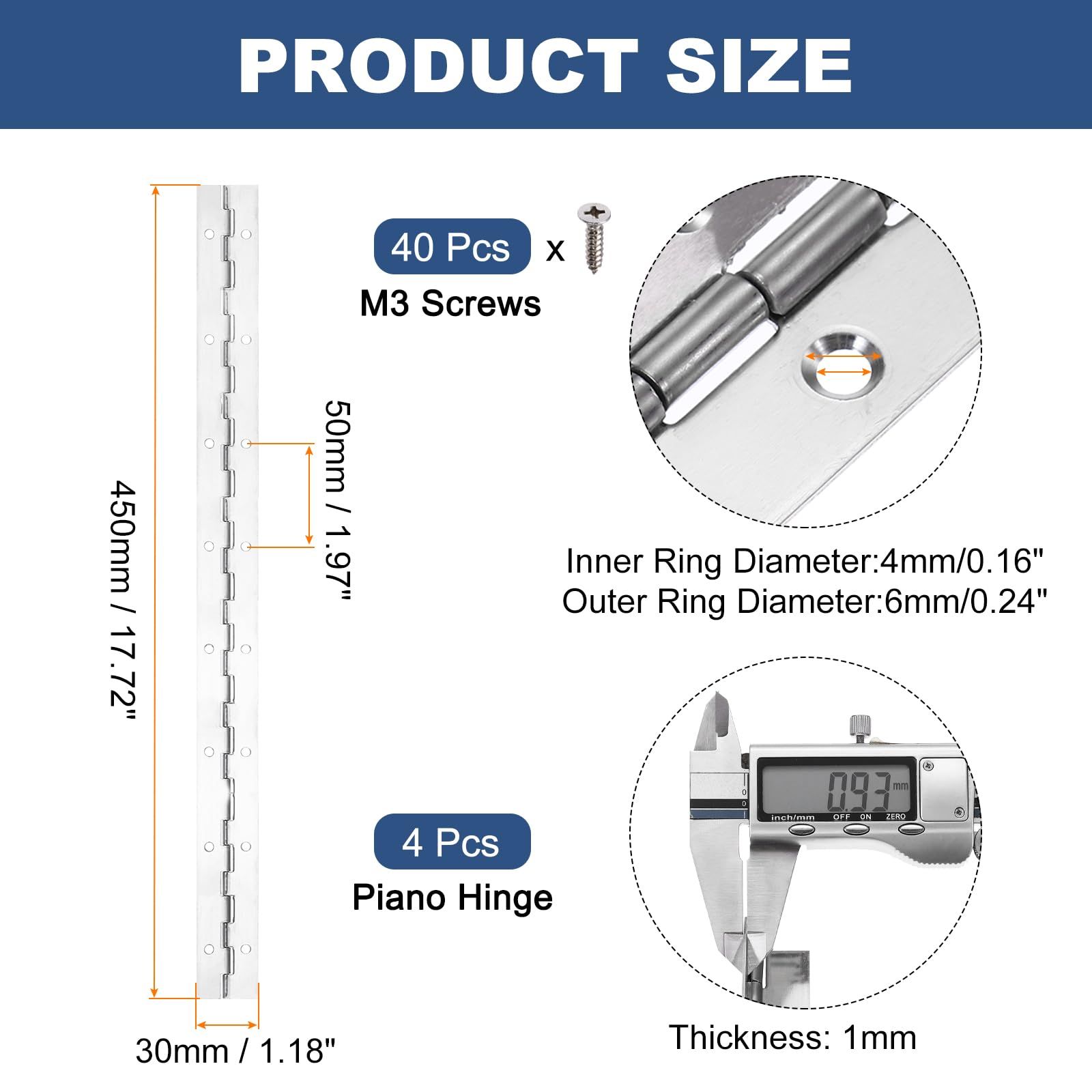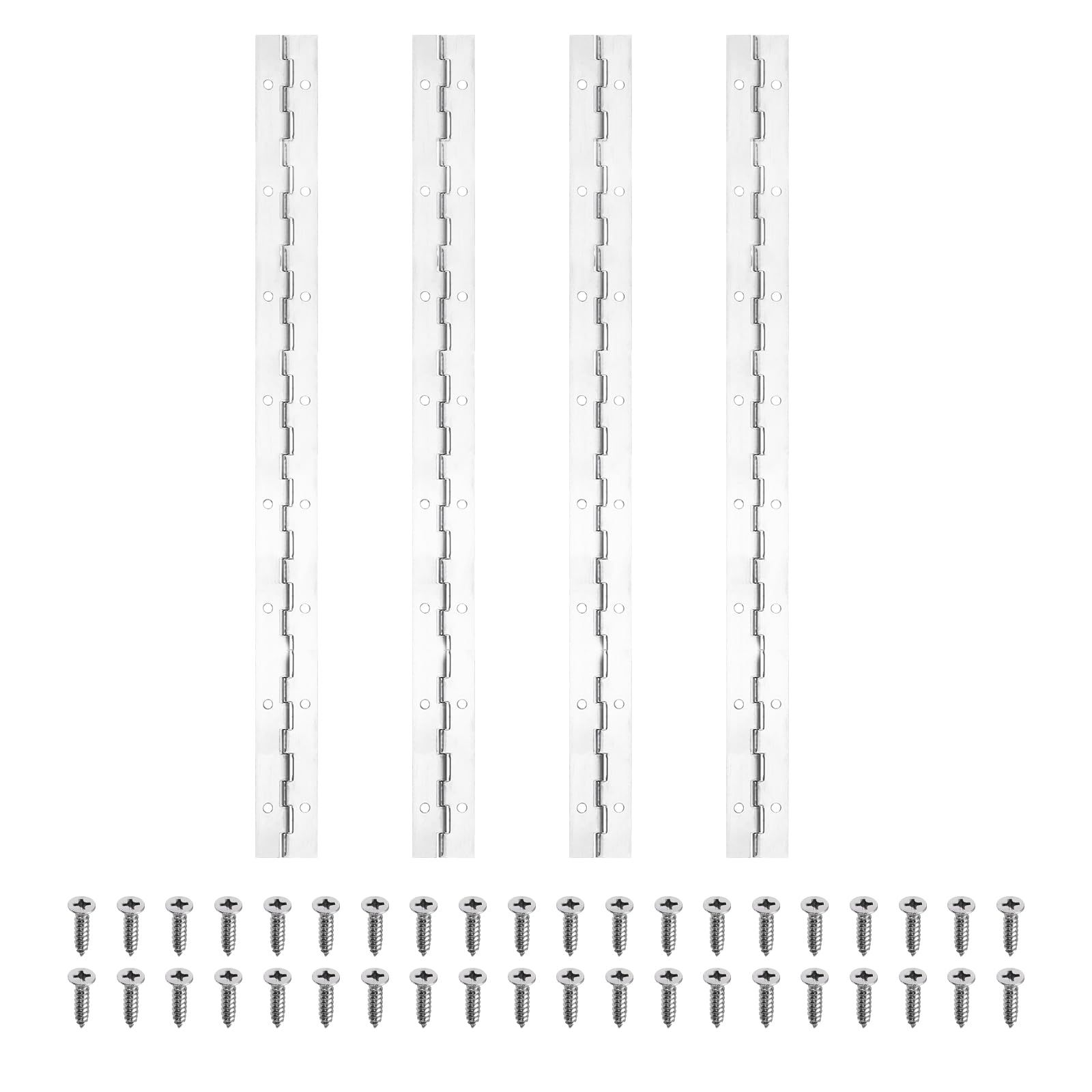 PATIKIL 4個 ピアノ蝶番 40cm ヒンジ 長い 平蝶番 ネジ付き 丁番 ステンレス ドアハード ウェアヒンジ キャビネット 戸棚 木箱用 シルバー