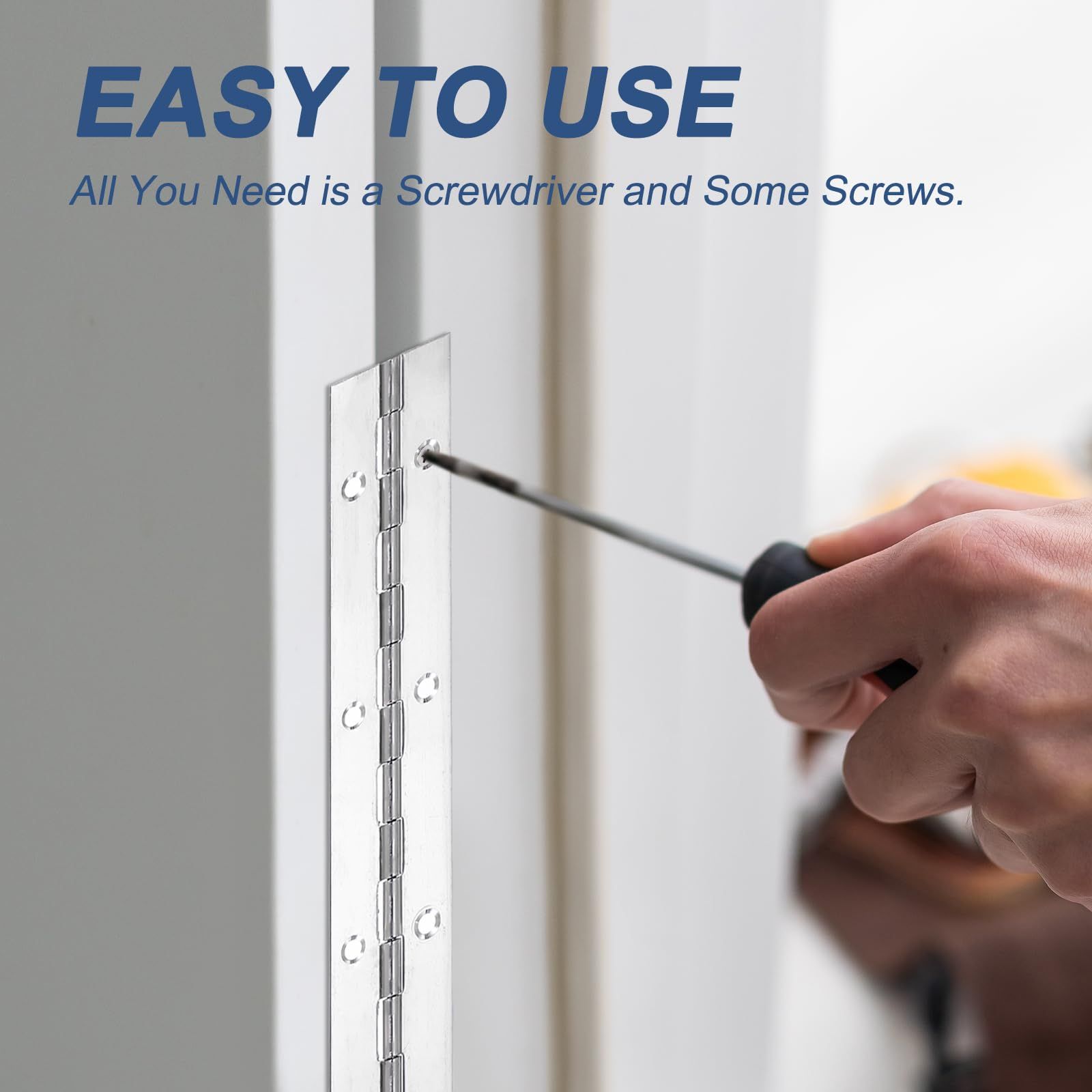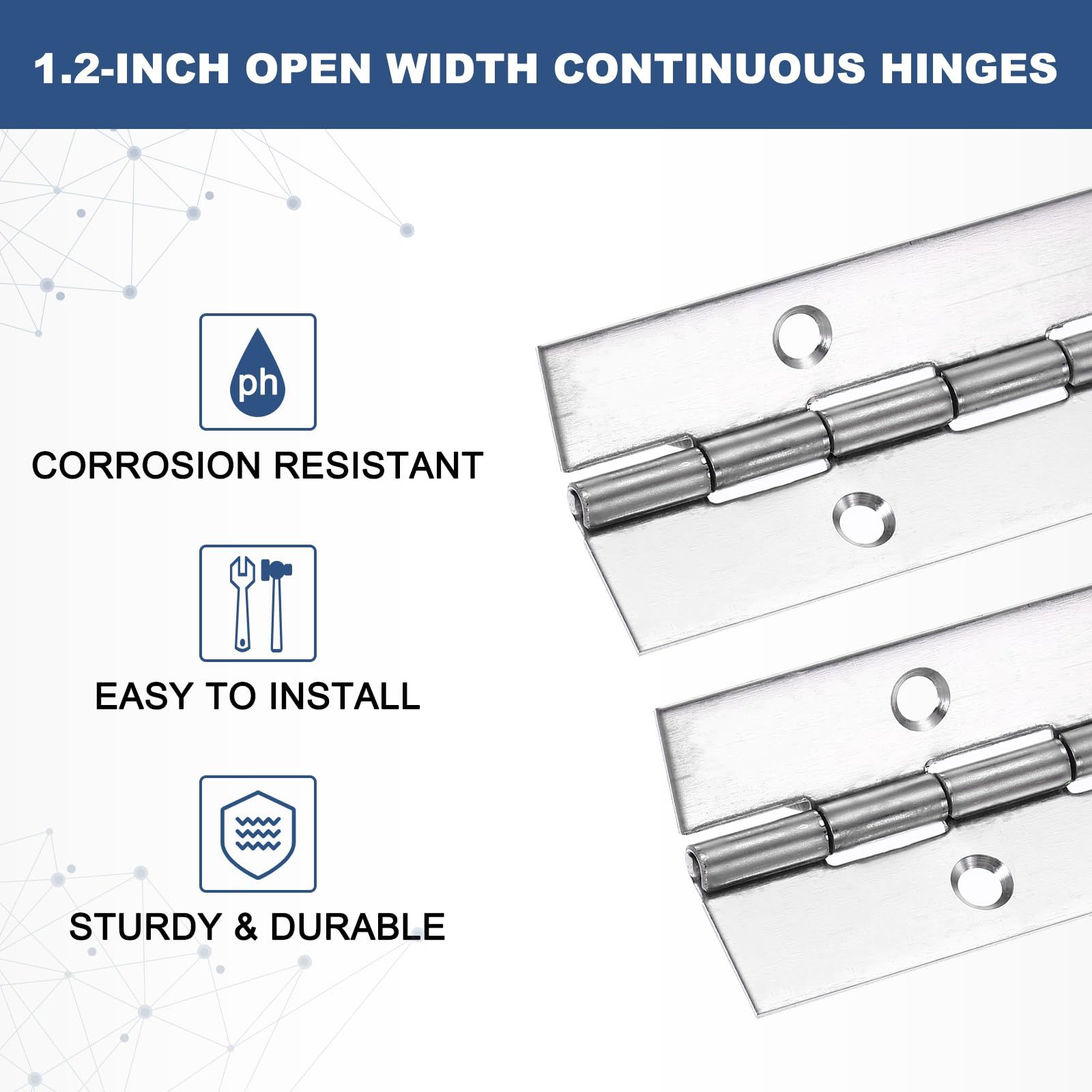 連続ヒンジは、木工、RV、およびその他のDIYプロジェクトで広く使用され、ドアや蓋の全長にわたって連続的なサポートを提供します。折りたたみテーブル、隠し宝石箱やおもちゃ箱、ドア/ドアキャノピーのヒンジ、点検パネルのヒンジ/ファスナー、キャビネットの蓋のヒンジなどに使用できます。