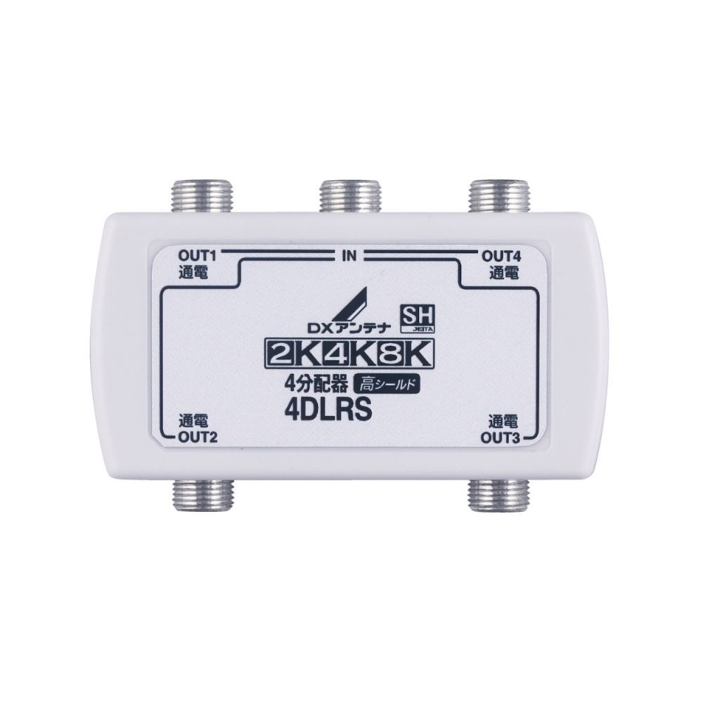 4K8K衛星放送(3224MHz)対応の、アンテナからの入力信号を均等に四つに分けることができる、屋内用4分配器です。