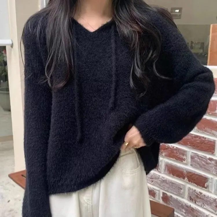 無地のシンプルなレディースニット