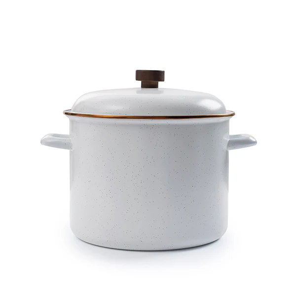 パスタを茹でたり、野菜を茹でたり、チリやシチュー、スープを作ったり、キャンプキットにもキッチンでの調理にも使える洗練されたデザインでホーロー加工の施されたエナメル製ストックポットです。