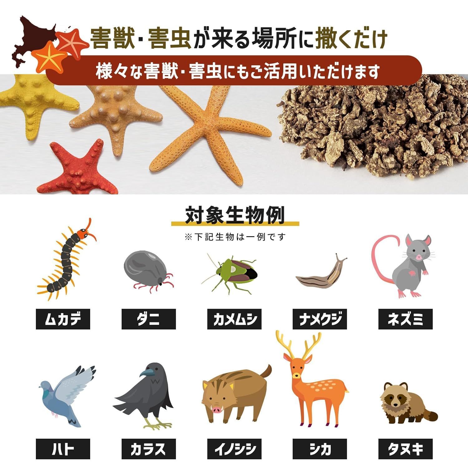 【ヒトデ忌避剤の強力な効果!】 天然成分を利用したヒトデ忌避剤が、ムカデやネズミなどの害獣・害虫に効果を発揮。設置することで害獣が嫌がる環境を作り、侵入を防ぎます。設置場所や環境によって効果が異なるため、ムカデやネズミの侵入経路を考慮して複数箇所に配置することが重要です。100%の効果をするものではなく、被害を軽減するための補助対策としてご活用ください。