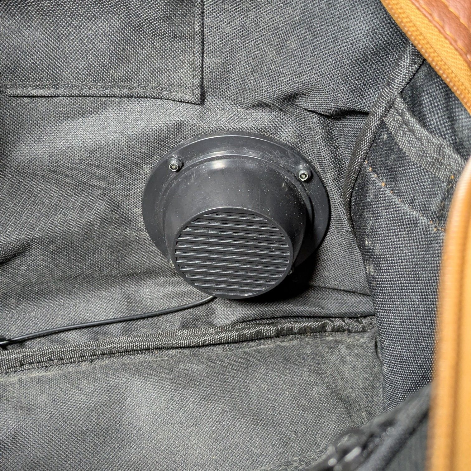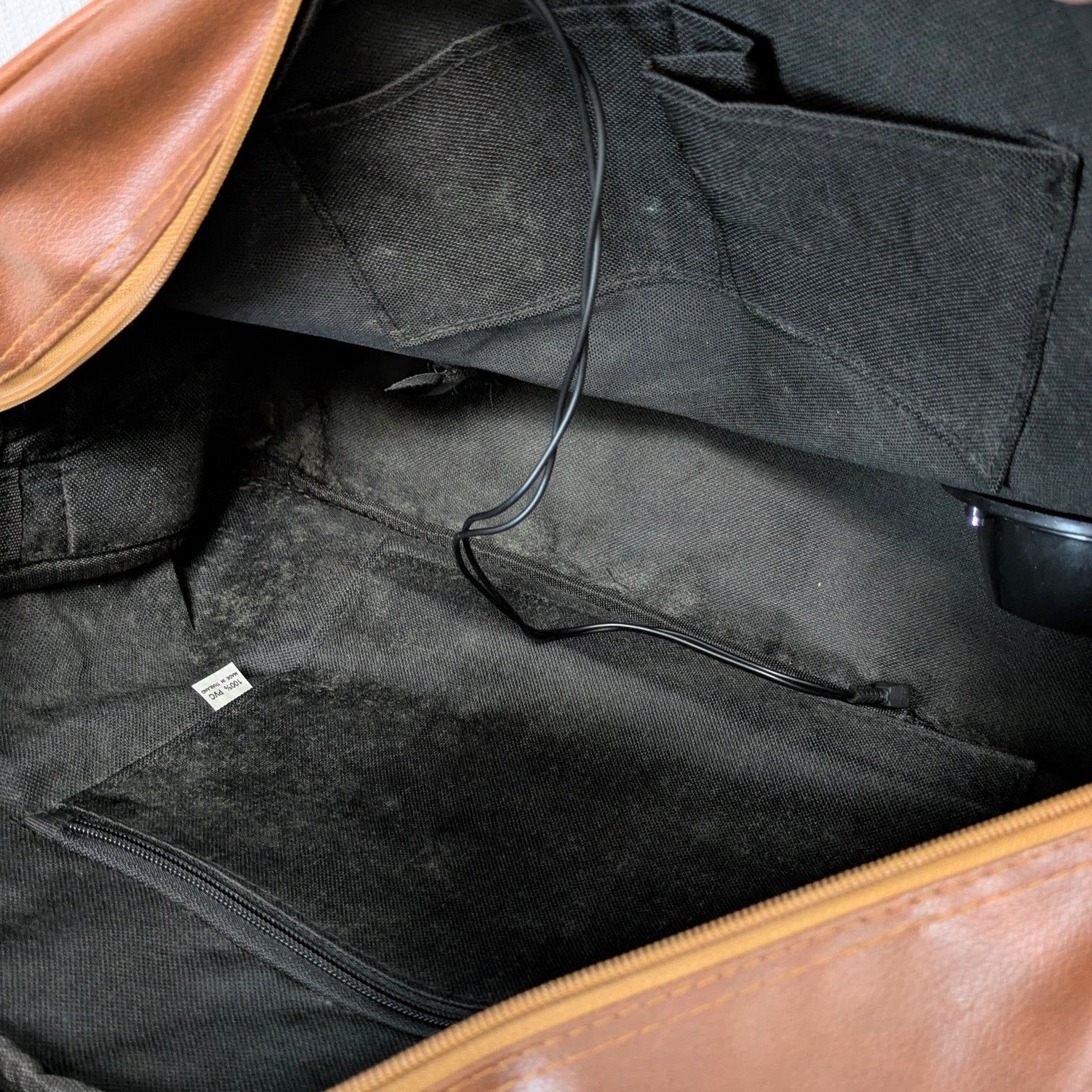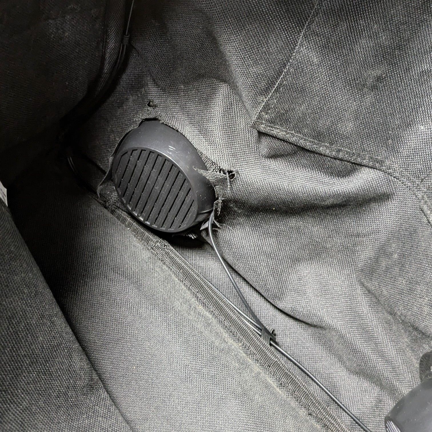 カバン内部、一つのスピーカーの継ぎ目の布が破れております。