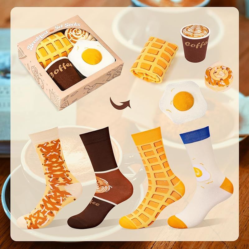 -おいしい朝食とカラフルな靴下を組み合わせた朝食ソックスボックス、どのような創造的なアイデア!おいしい食べ物は斬新でカラフルなパターンになり、朝食ガーソックスはあなたの人生に味を追加します!-あなたの退屈な人生を変え、面白い朝食ソックスボックスを選ぶことから始めましょう!独特な設計によって、それはおいしい食糧恋人のための完全な選択です。