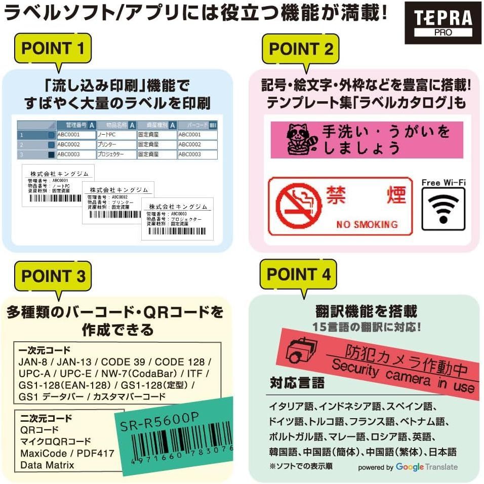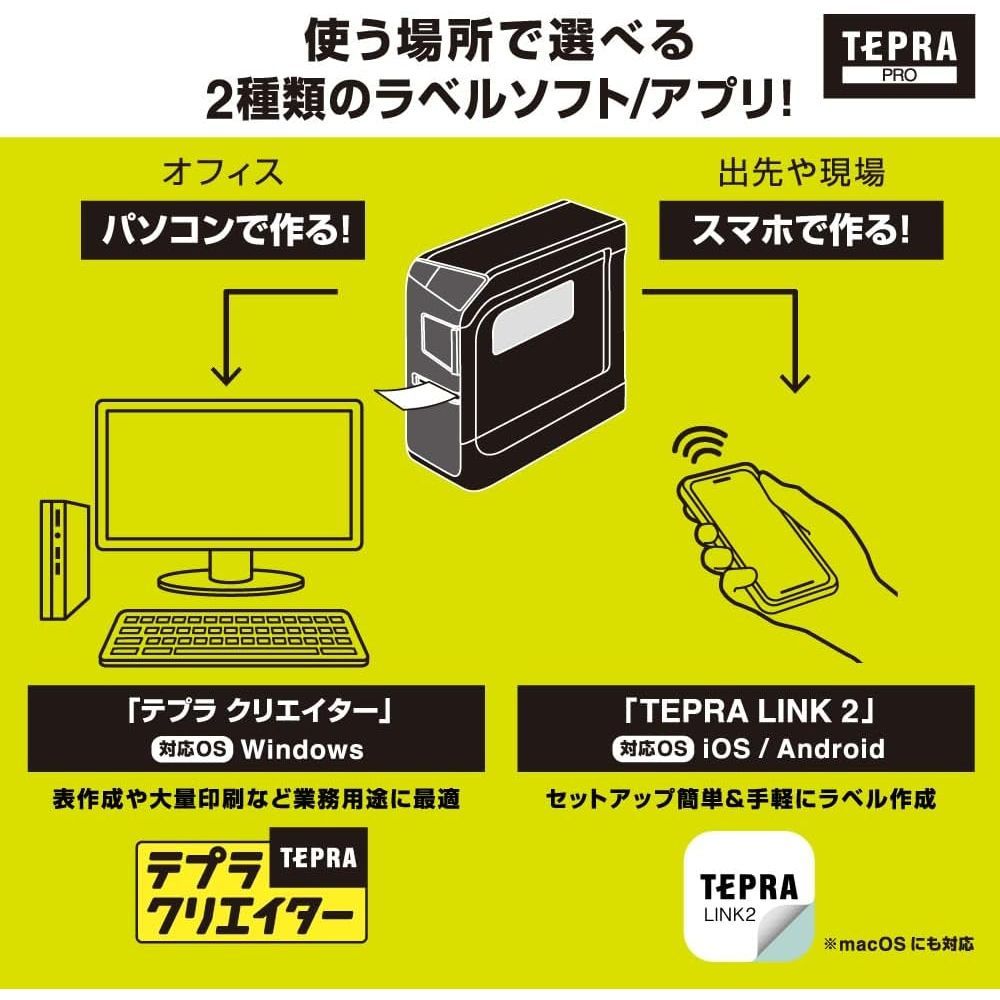 ・対応PCソフト:Windows:「テプラ クリエイター」 、 macOS :「TEPRA LINK 2」