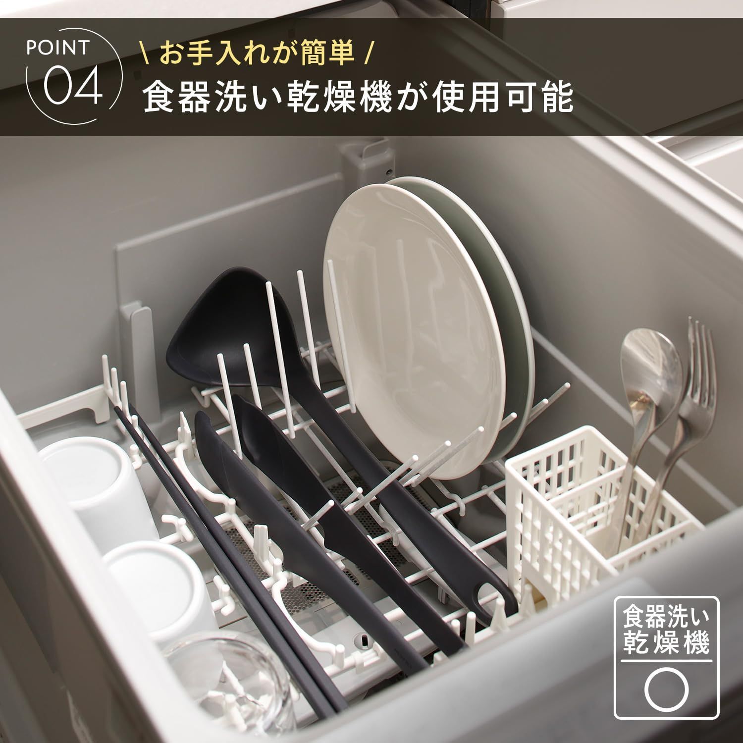 【食洗機対応・凹凸がなく洗いやすい形状】先端の溝などの凸凹がないため、天ぷらや炒め物などをした後も汚れがたまりにくく、お手入れが簡単です。