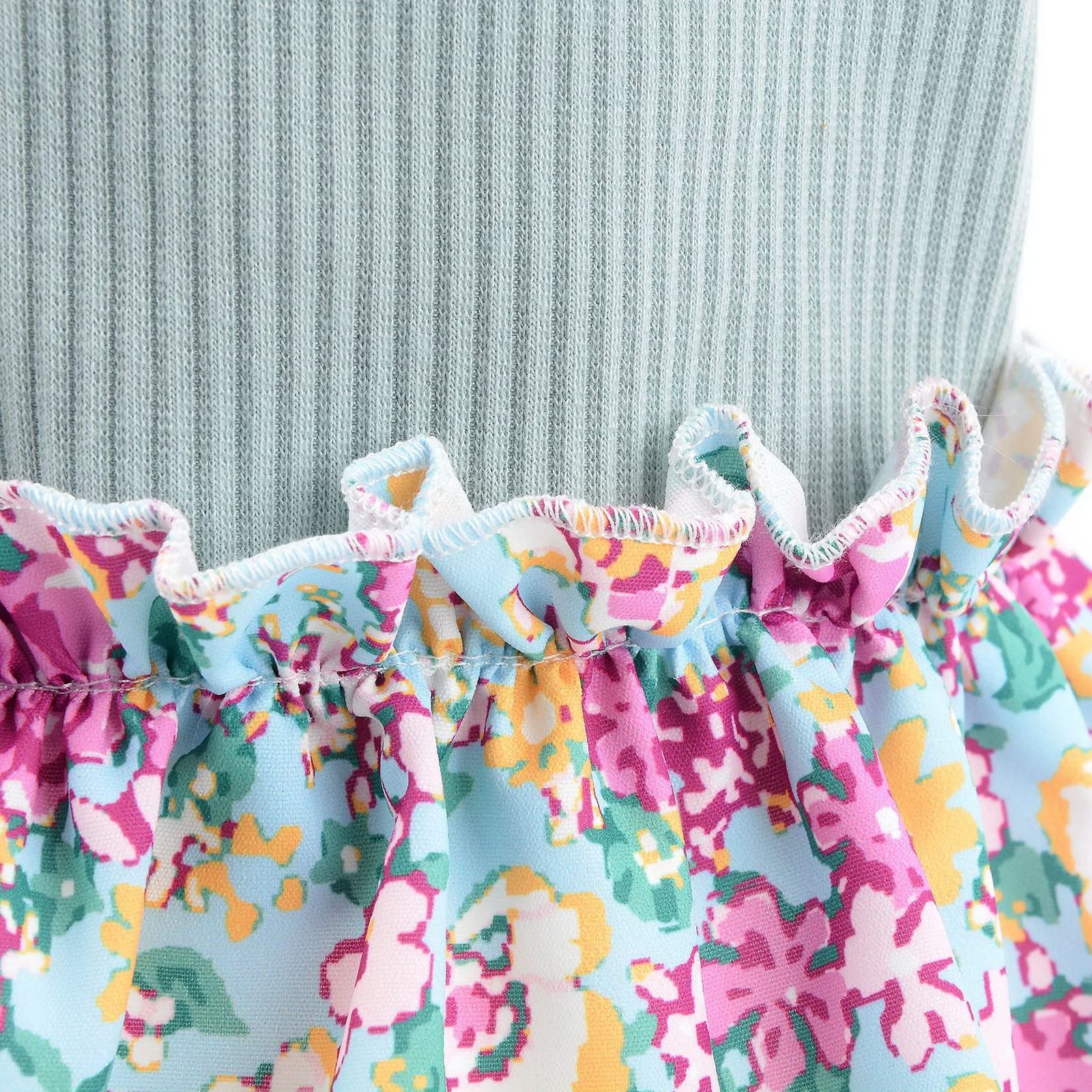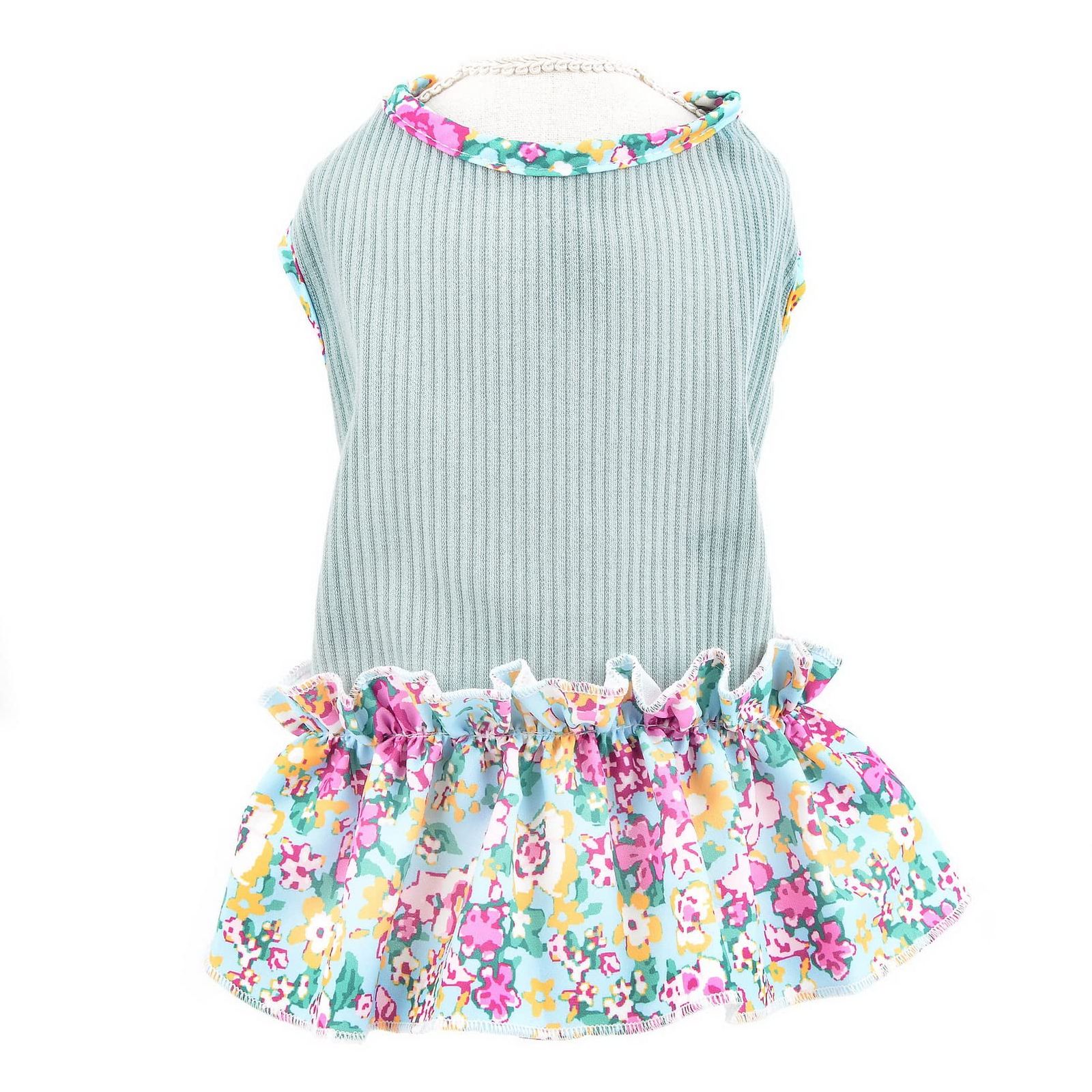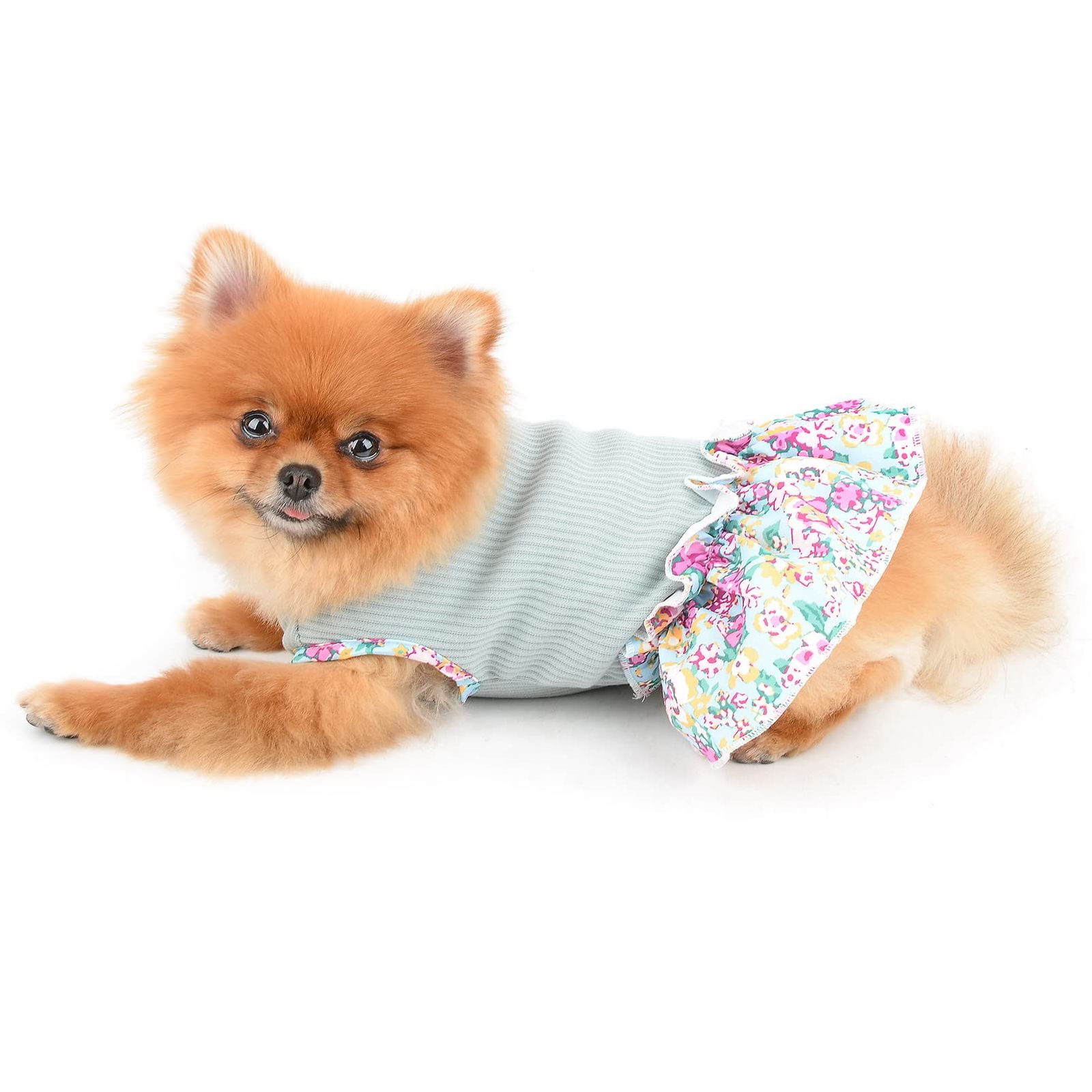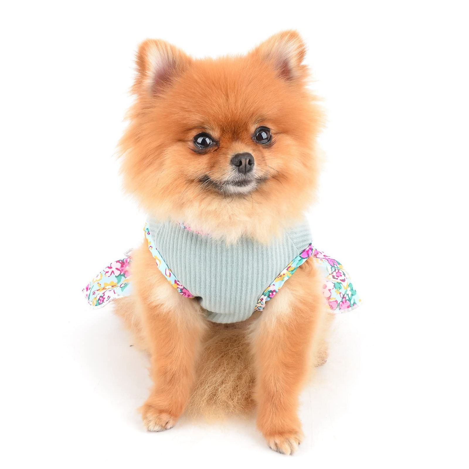 SMALLLEE_LUCKY_STORE 犬服 小型犬 春夏 ニット花柄 ワンピース お姫様 簡単着脱 女の子猫服 洋服,グリーン,M