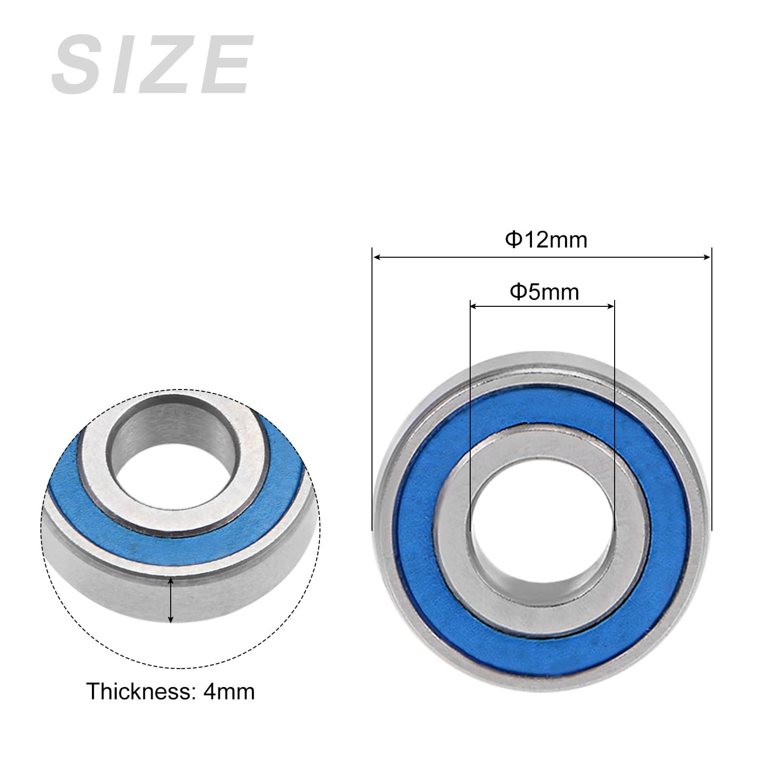 METALLIXITY ディープグルーブボールベアリング(MR125-2RS、5mm x 12mm x 4mm)10個、クロム鋼ダブルシールド工業用ベアリング - 産業用マイクロモーター用、ブルー