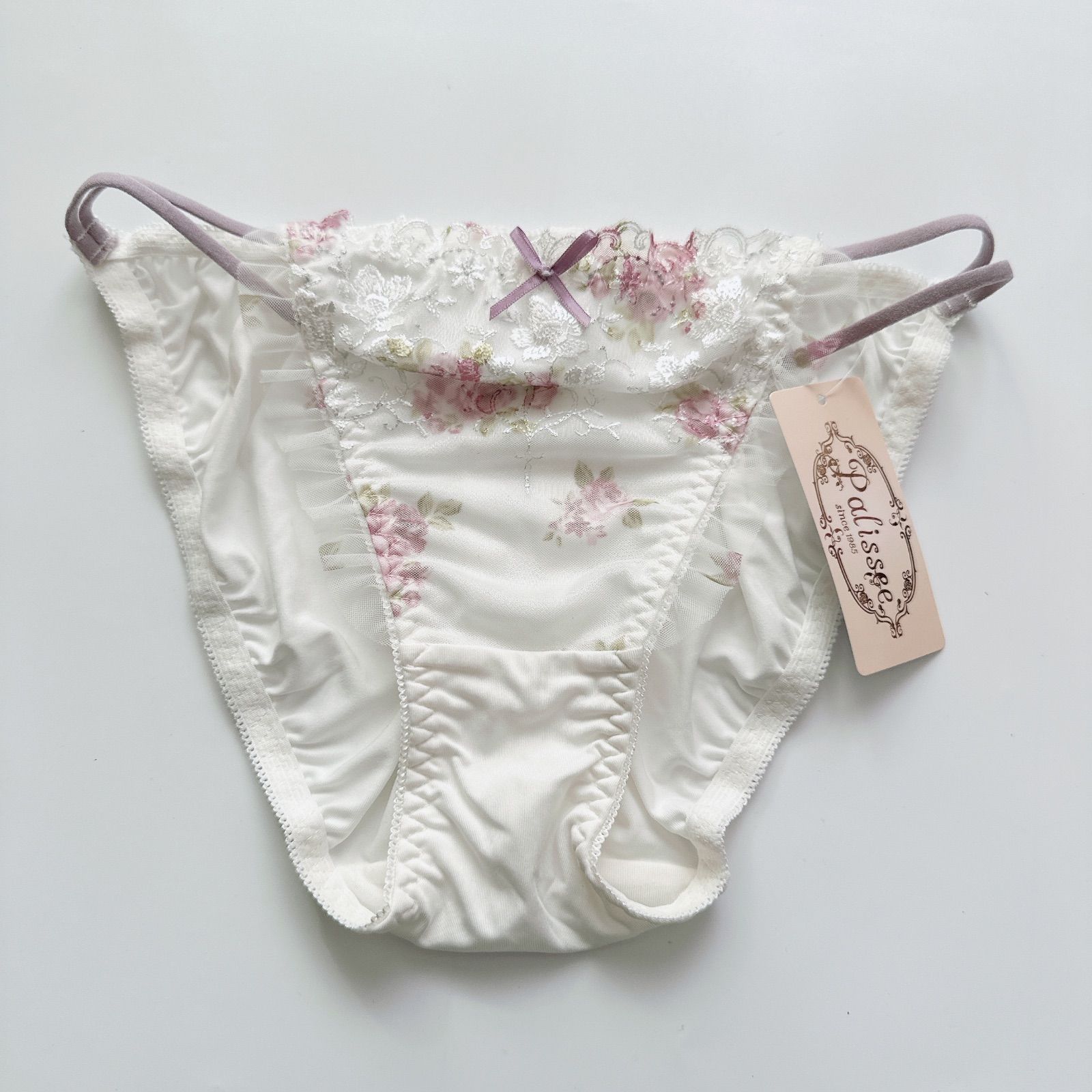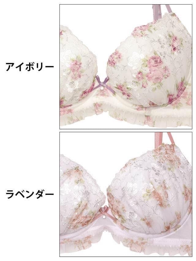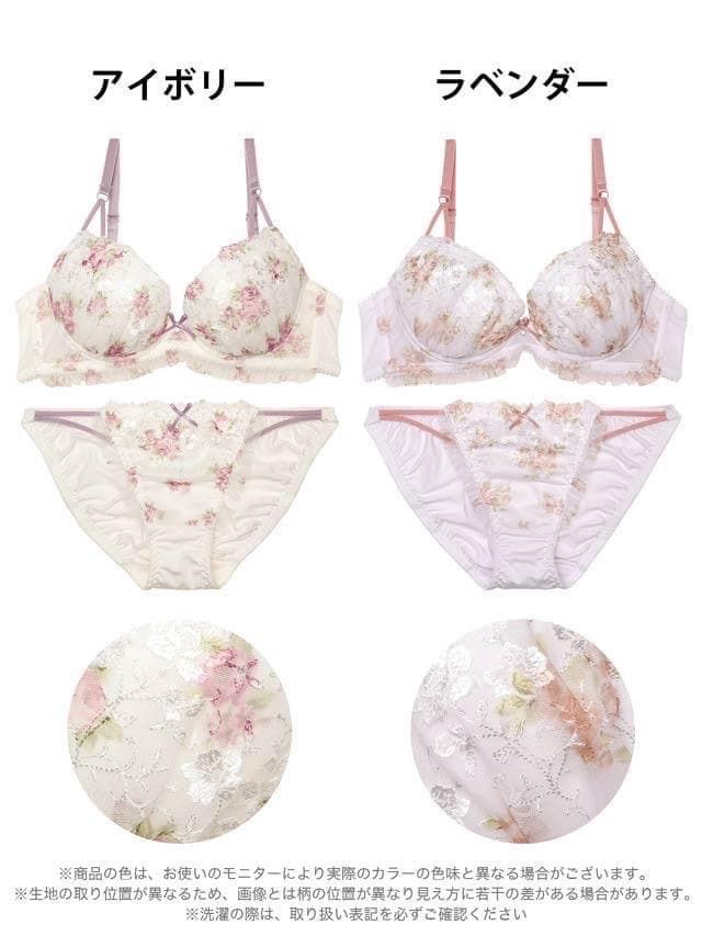水彩フラワーストリングチュールブラジャー&フルバックショーツ