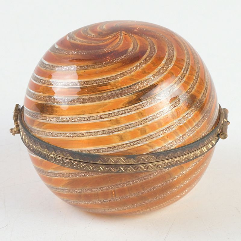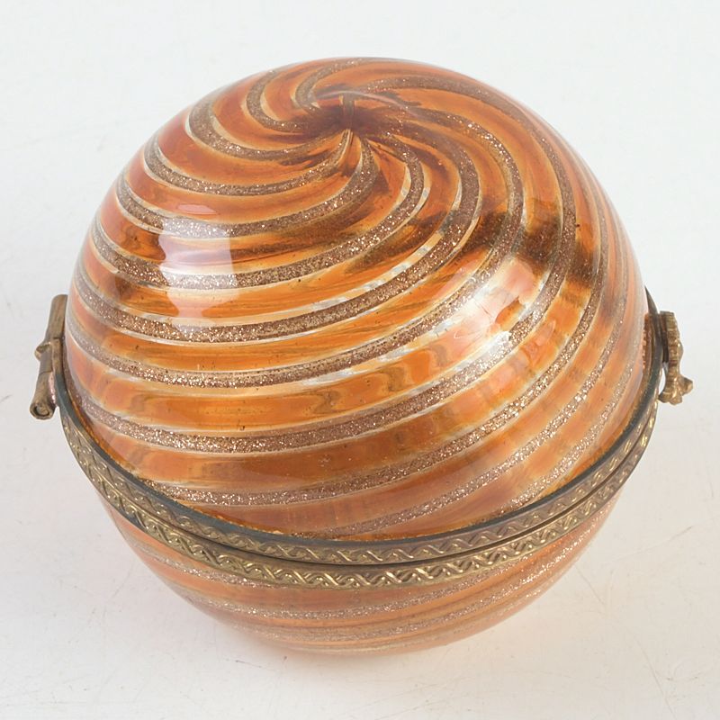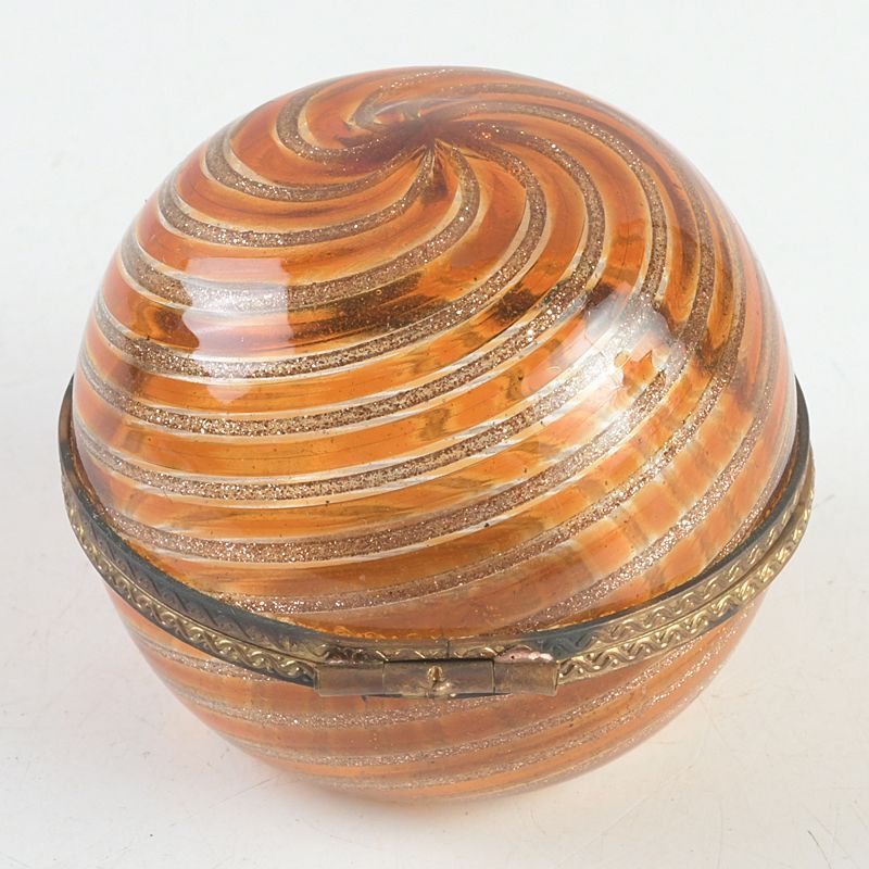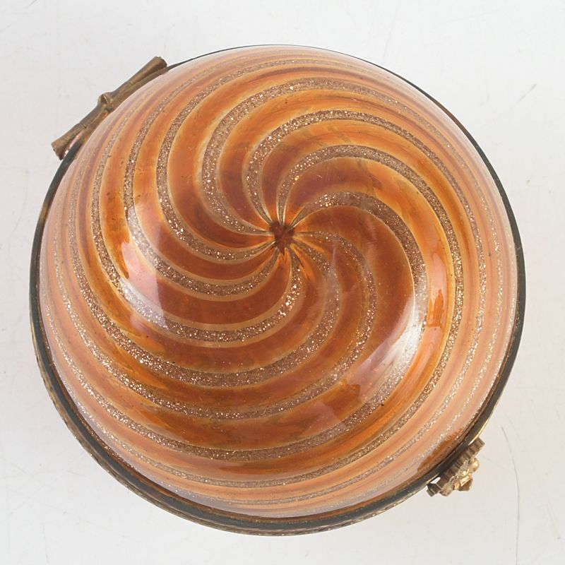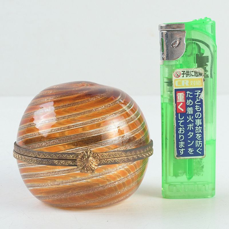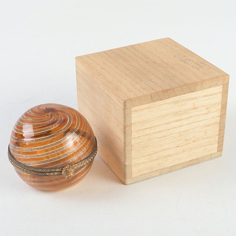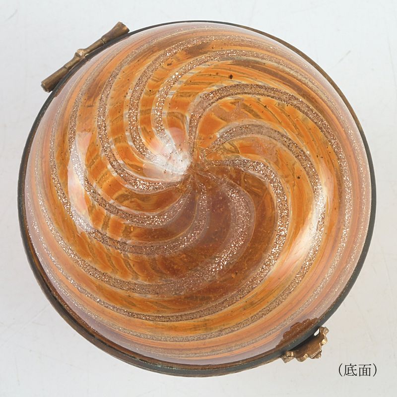 西洋アンティーク ガラス細工 渦巻香合 共箱 V S129