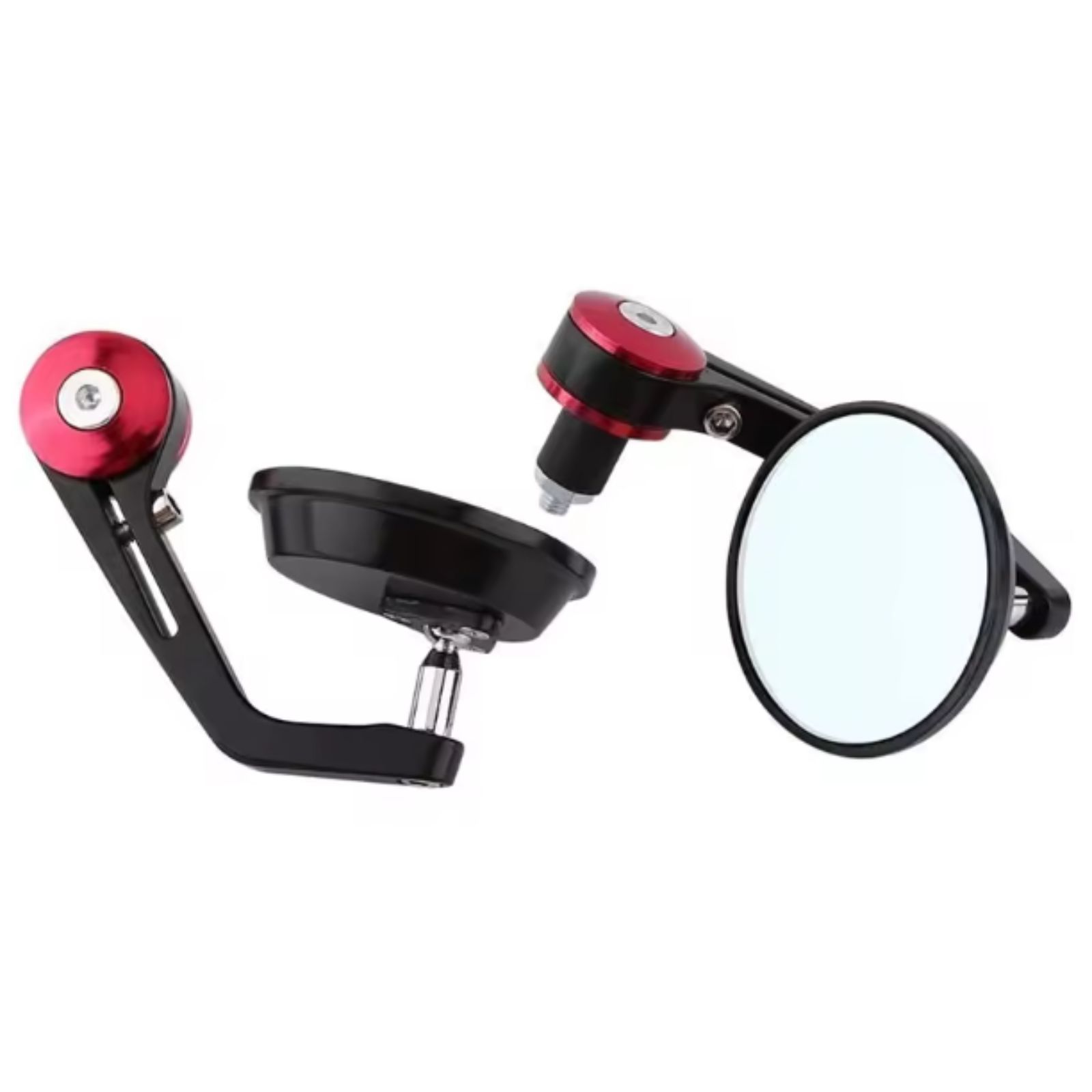 バーエンドミラー 左右セット 22.2mm レッド/黒 汎用 SR400 GB250 250TR W650 カフェレーサー ブルーレンズ