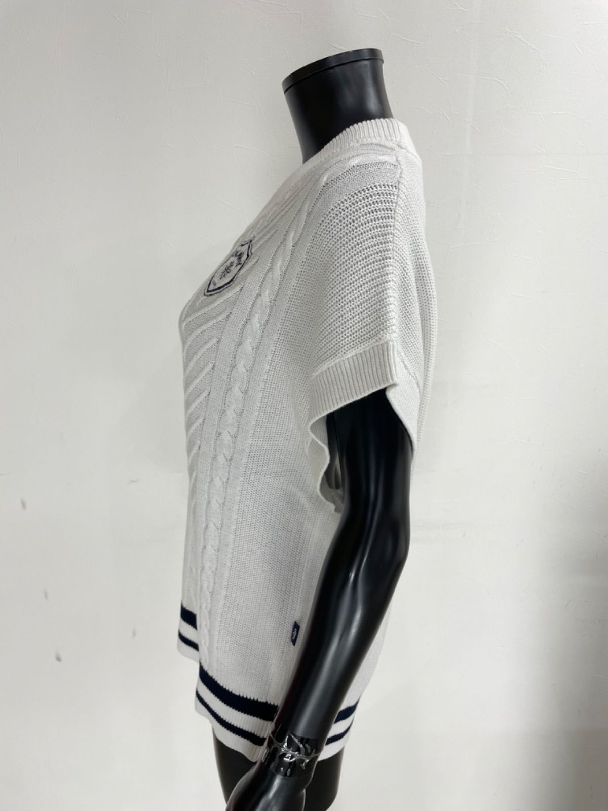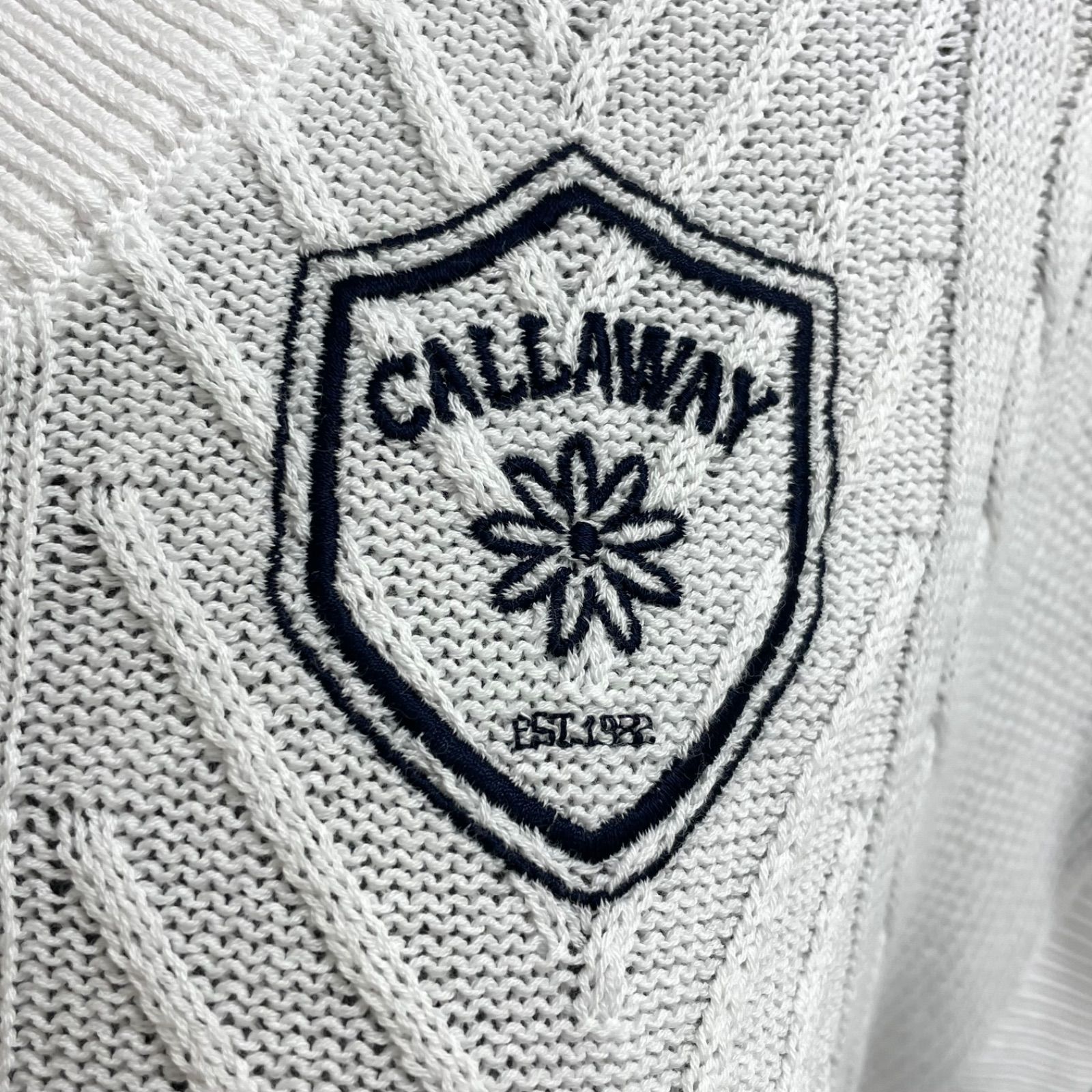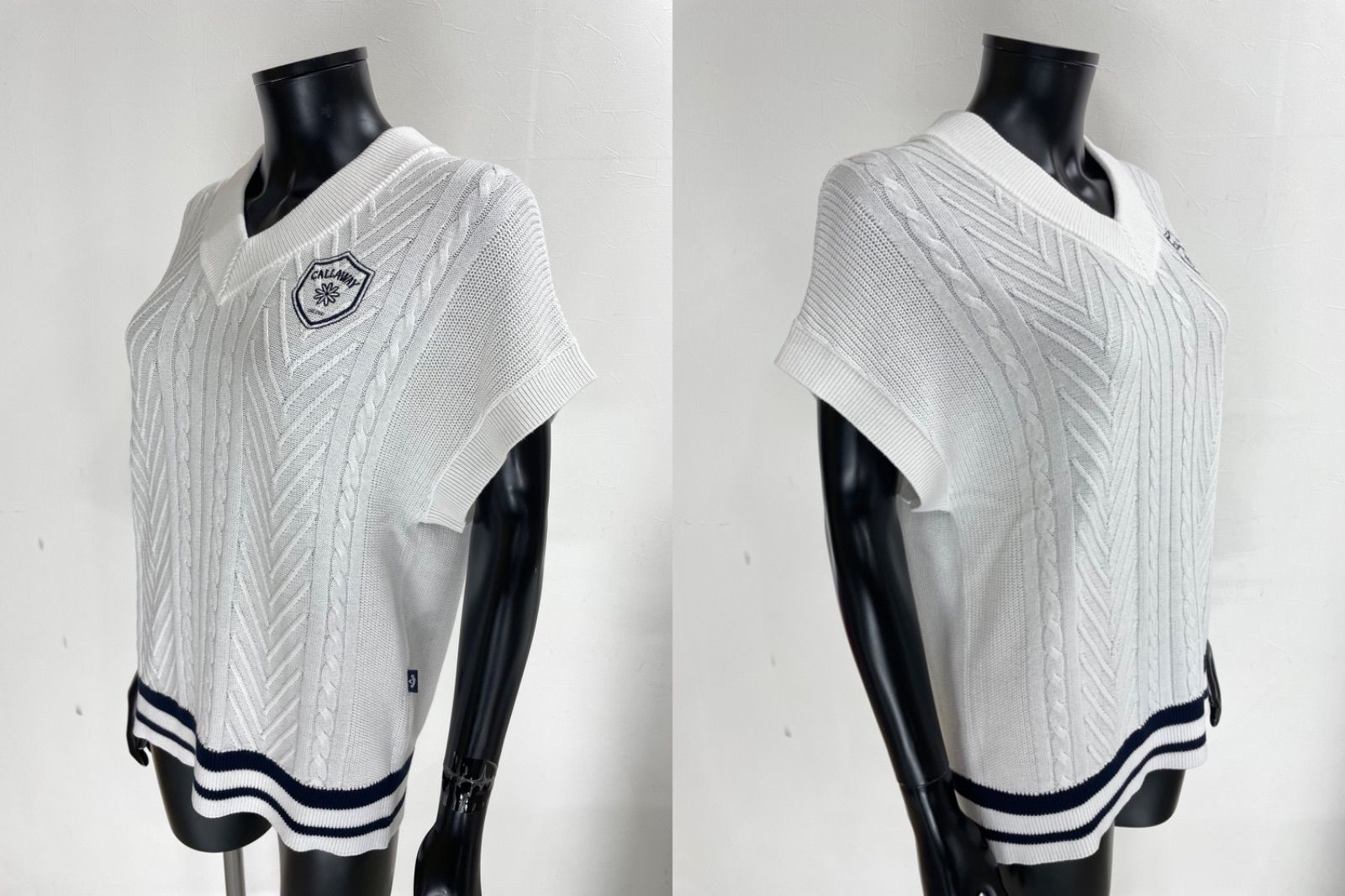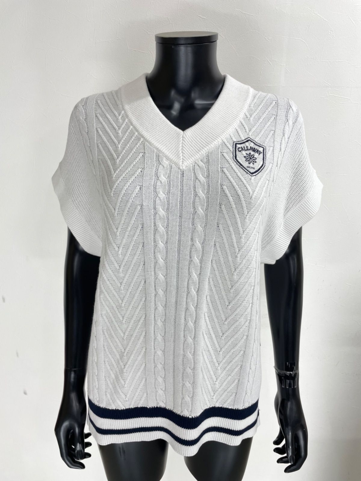 【USED】Callaway キャロウェイ アクリル Vネック ニット ベスト ロゴ刺繍 ホワイト 白 レディース L ゴルフウェア