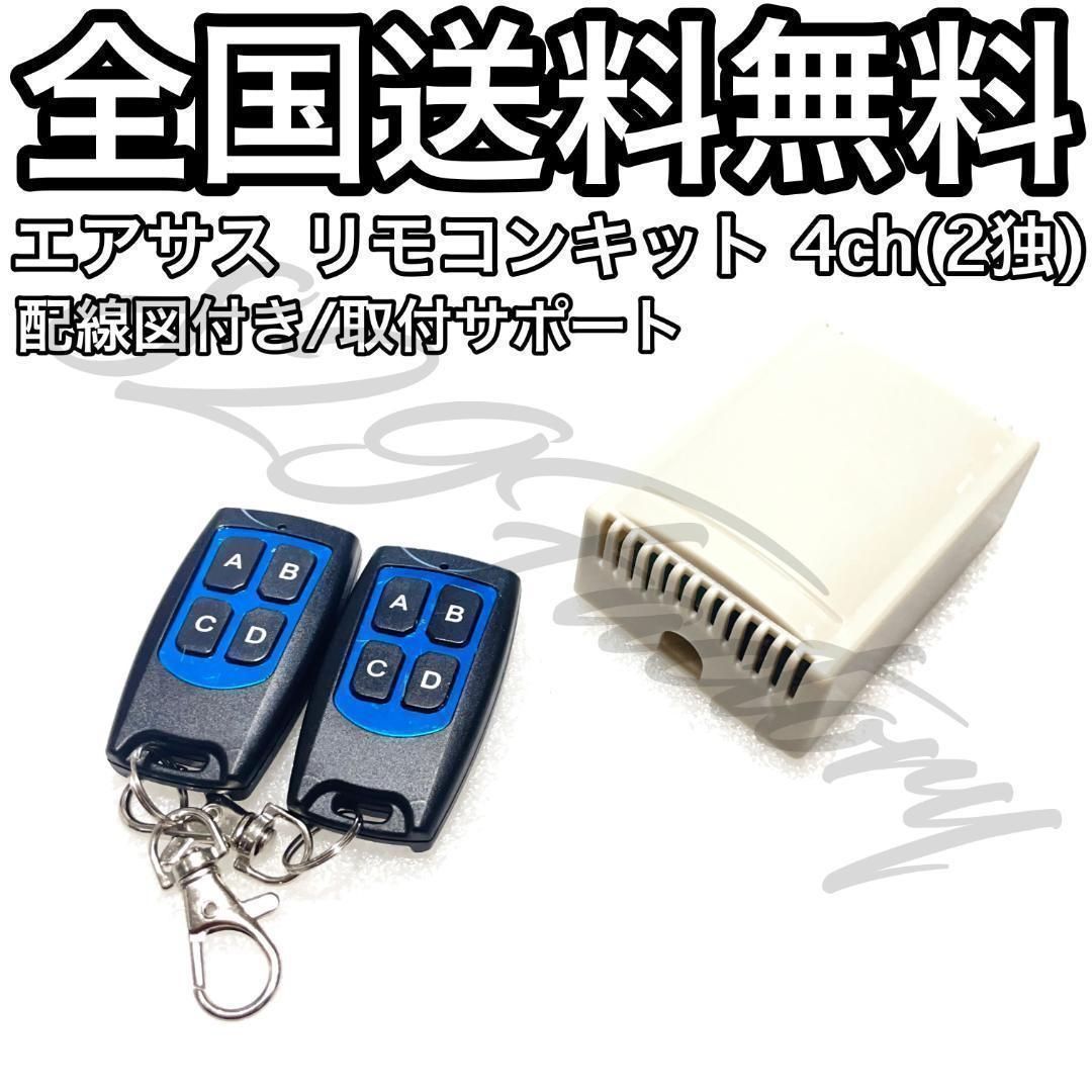 リモコンキット 4ch 4チャンネル 2独 汎用 電磁弁 マニホールドソレノイドバルブ ソレノイドバルブ ブラック 配線図 取付サポート エアサス