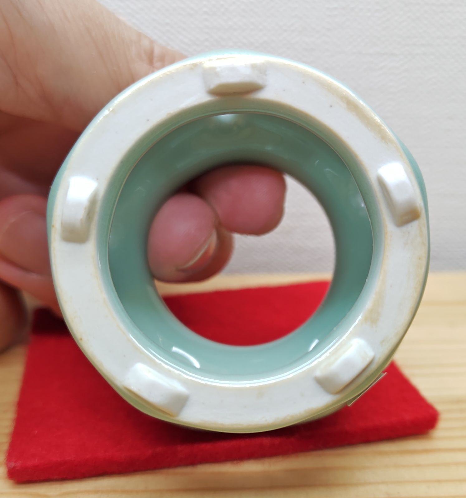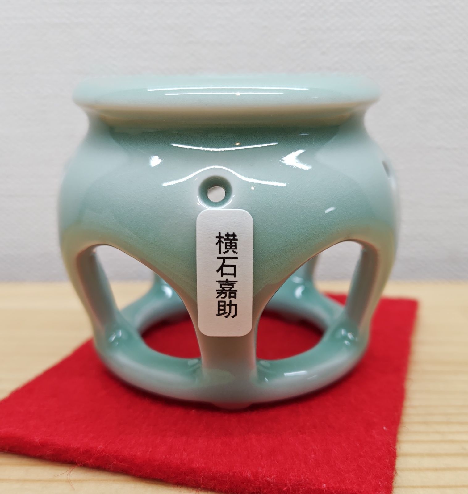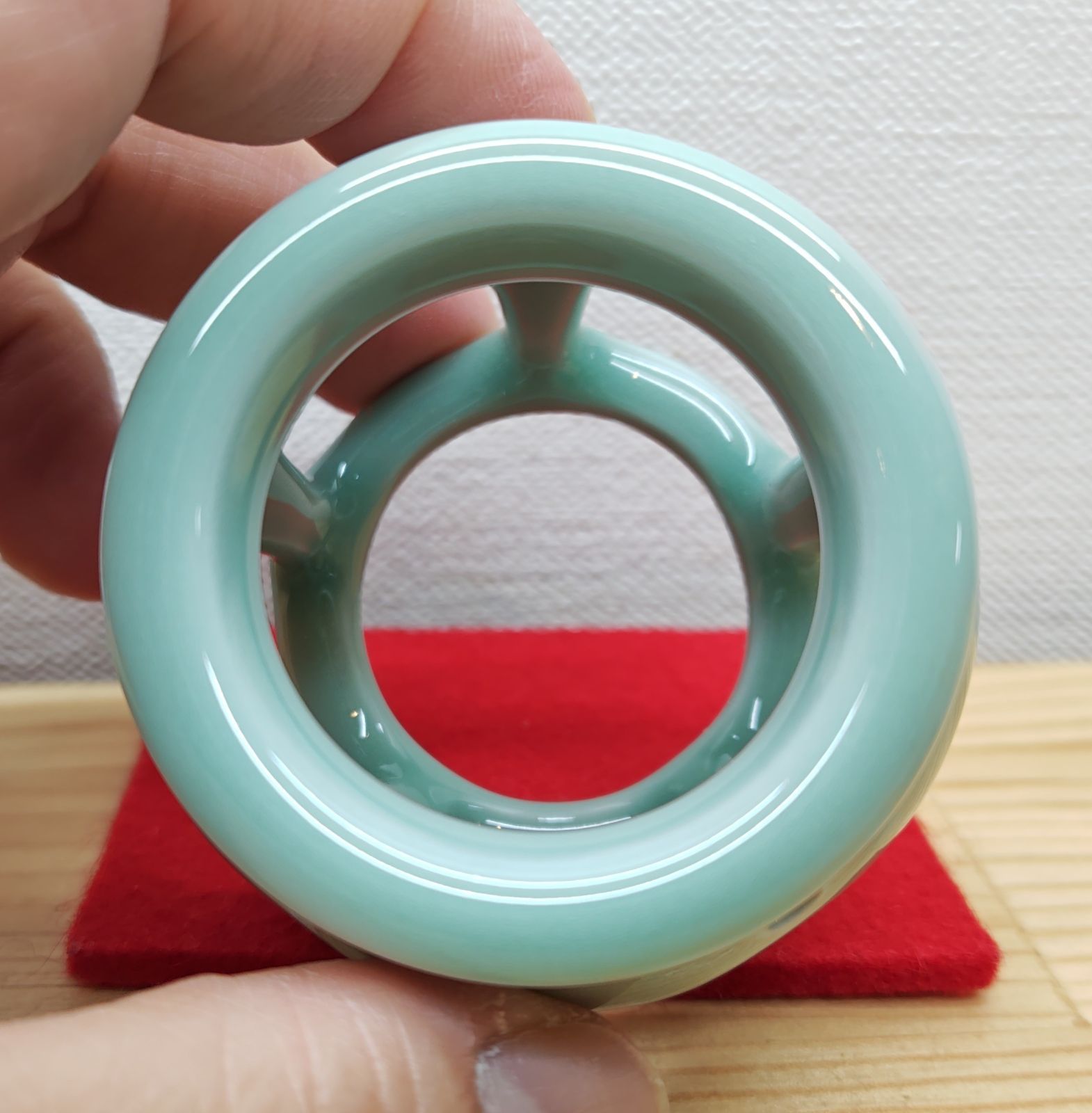 嘉助さんは、青磁の色合いが綺麗でも有名で、こちらの蓋置の色合いもスッキリしていて、味わいがあります。