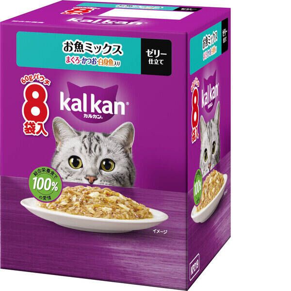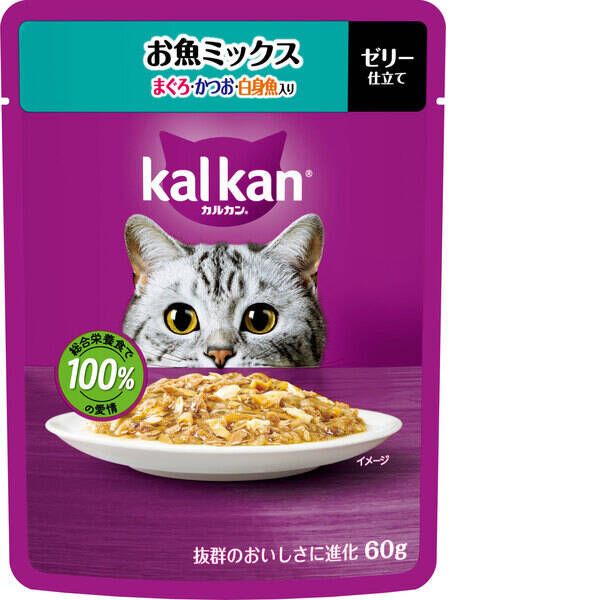 ●抜群のおいしさに進化!厳選されたまぐろ・かつお・白身魚をカルカン特製だしで煮込み、ジューシーなゼリー仕立てにしました。