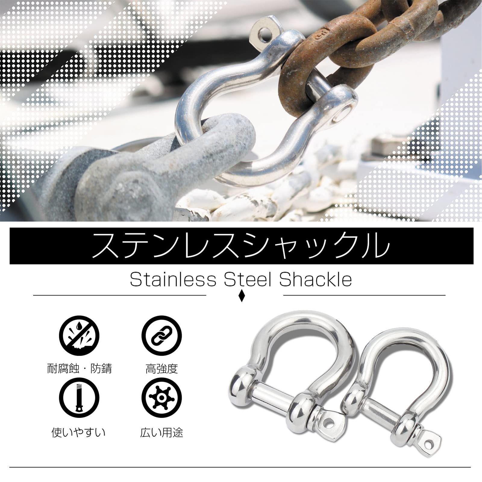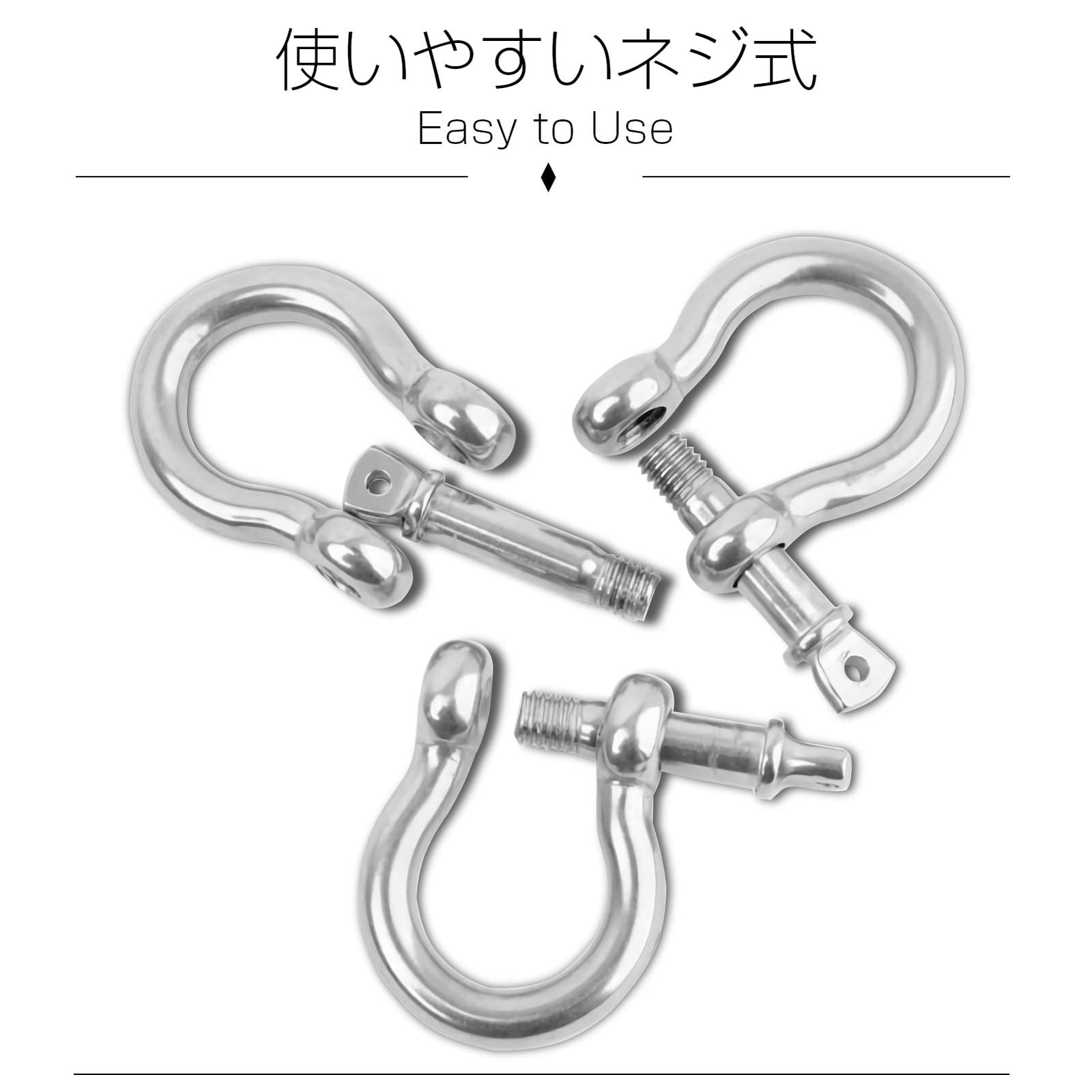 Atibin 弓型 D シャックル ステンレス 金具 強力 牽引 シャックル スチール フック 鍛造 ネジ式 しゃっくる ワイド 吊り具 M8 400kgf 4個入