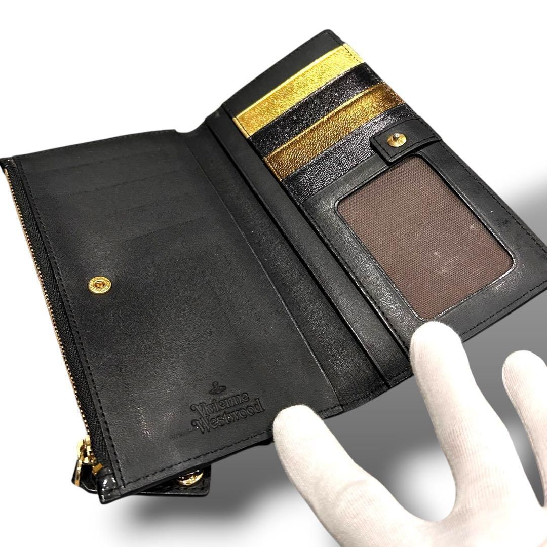 ヴィヴィアンウエストウッド 長財布 額縁 フレーム エナメル メンズ レディース ロゴ ブラック