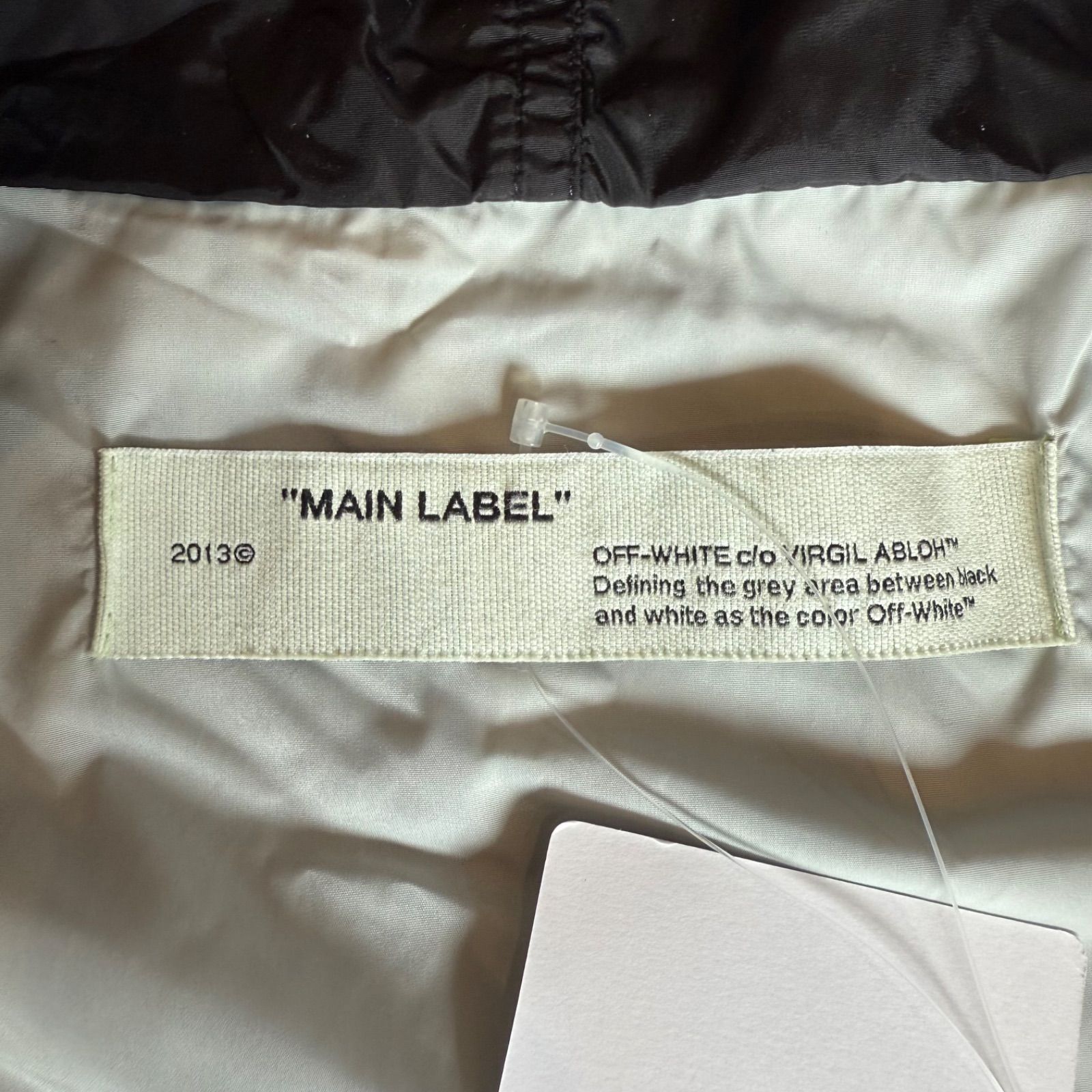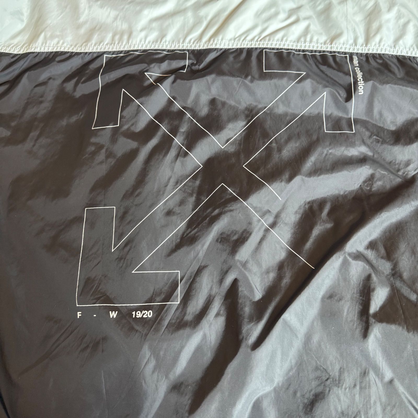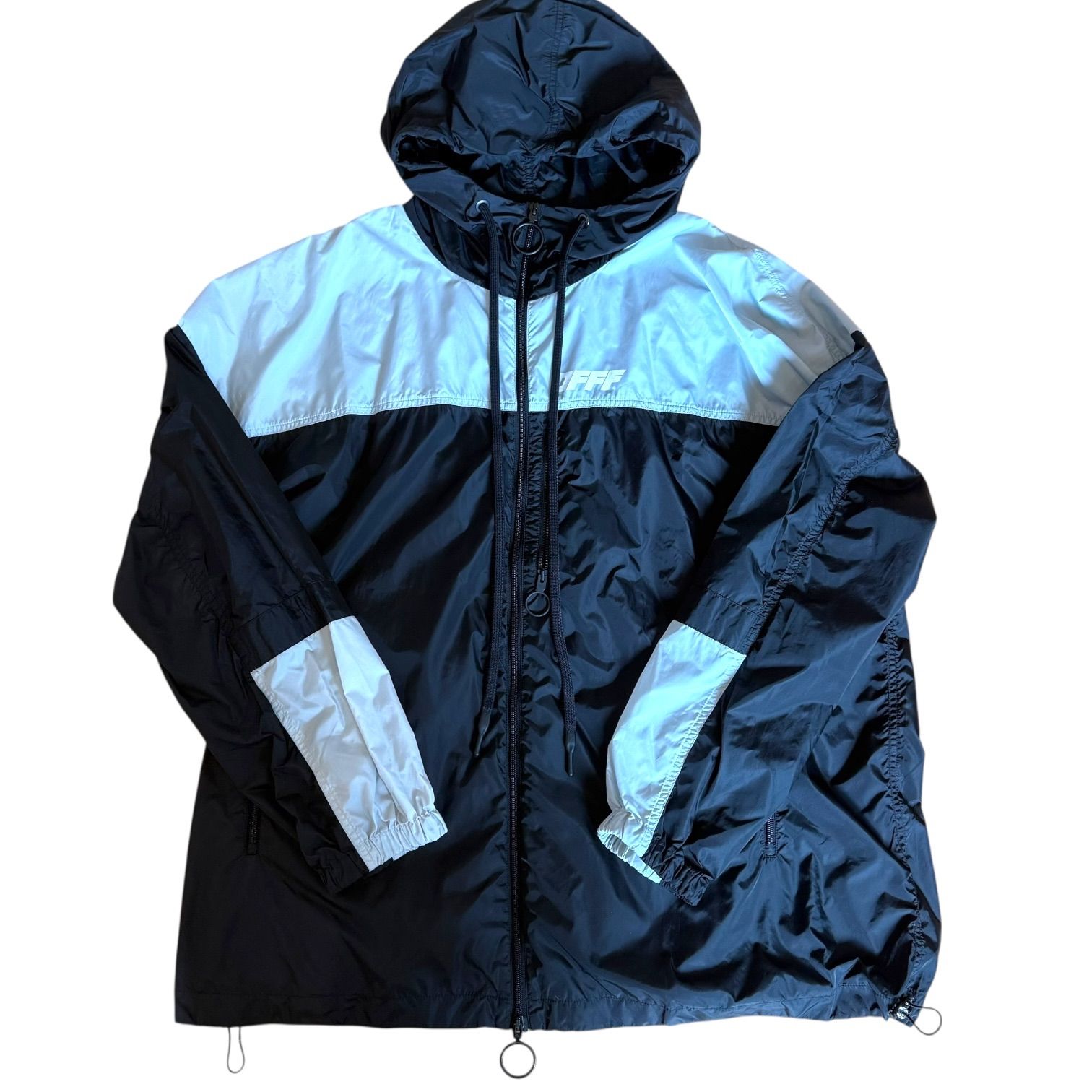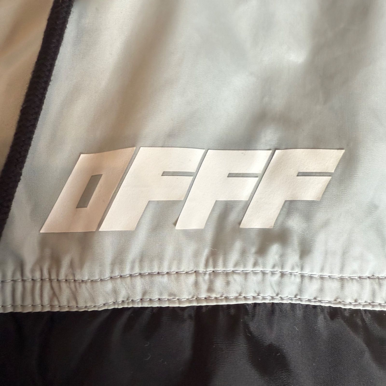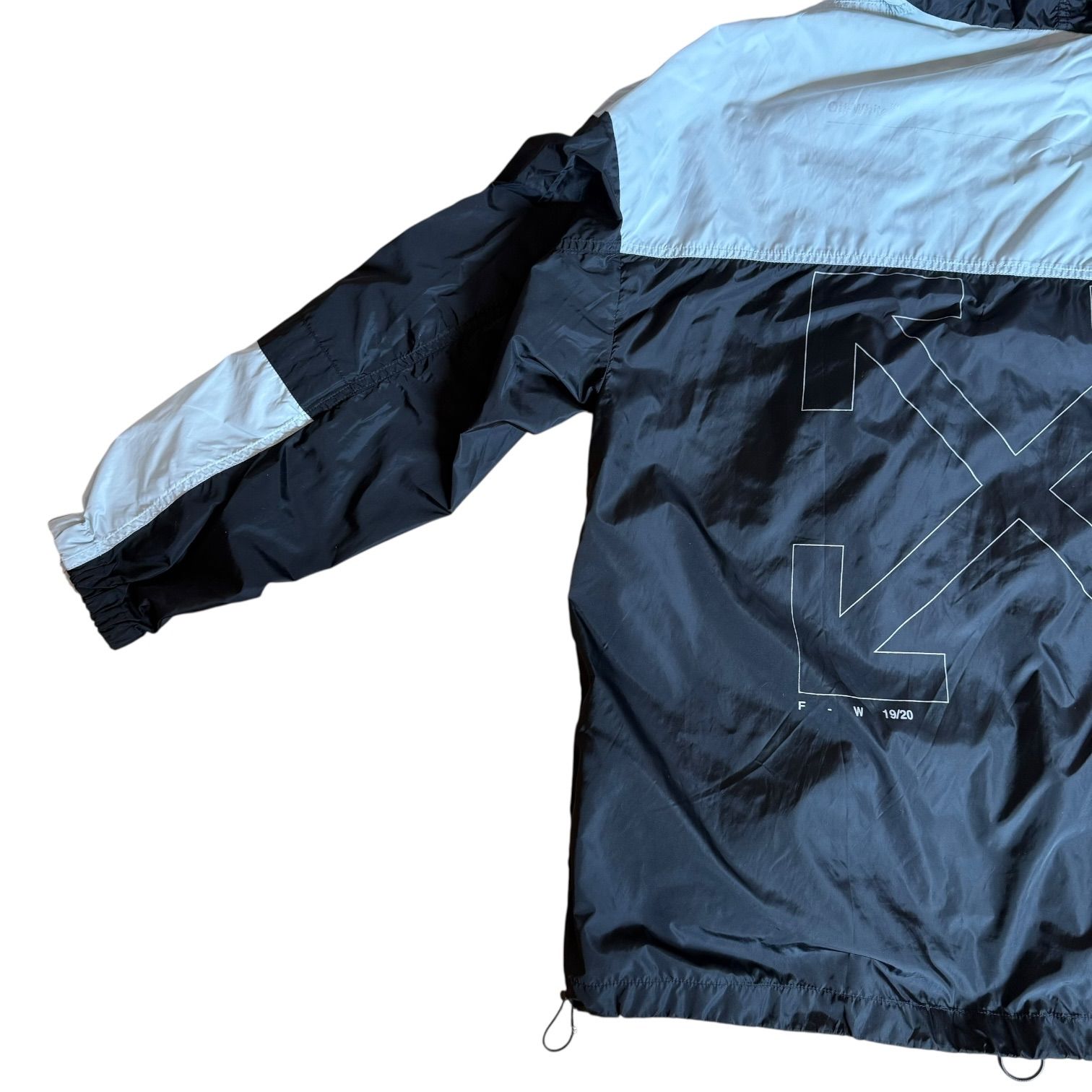 OFF-WHITE オフホワイト アウター ウィンドブレーカー ナイロンジャケット Mサイズ ジップアップ 防寒 ブラック シルバー アウトドア 男性 メンズ オーバーサイズ パリアミド 秋 冬 登山 キャンプ フード付き 中古