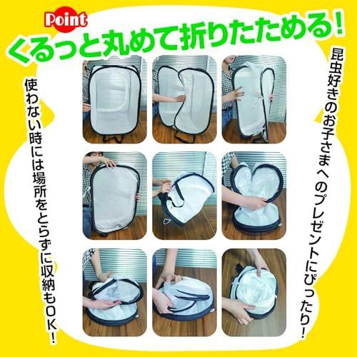 使わない時には、くるっと丸めて折りたためます!場所をとらずに収納もOK!昆虫好きのお子さまへのプレゼントにぴったりの虫かご、昆虫用ケージです。