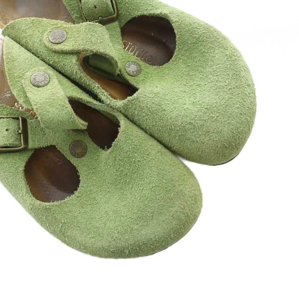 【商品名】ビルケンシュトック BIRKENSTOCK サンダル フラット ロゴ ベルト レザー 緑 グリーン ■GY18 /MQ