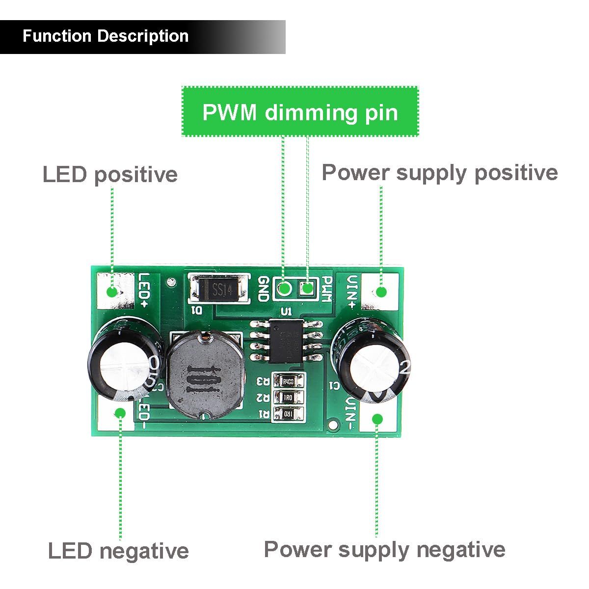 ??【機能】】: 2-3WのLEDライトを駆動できるLEDライトドライバボードで、PWM調光、広い電圧入力をサポートし、低ノイズで安全です。
