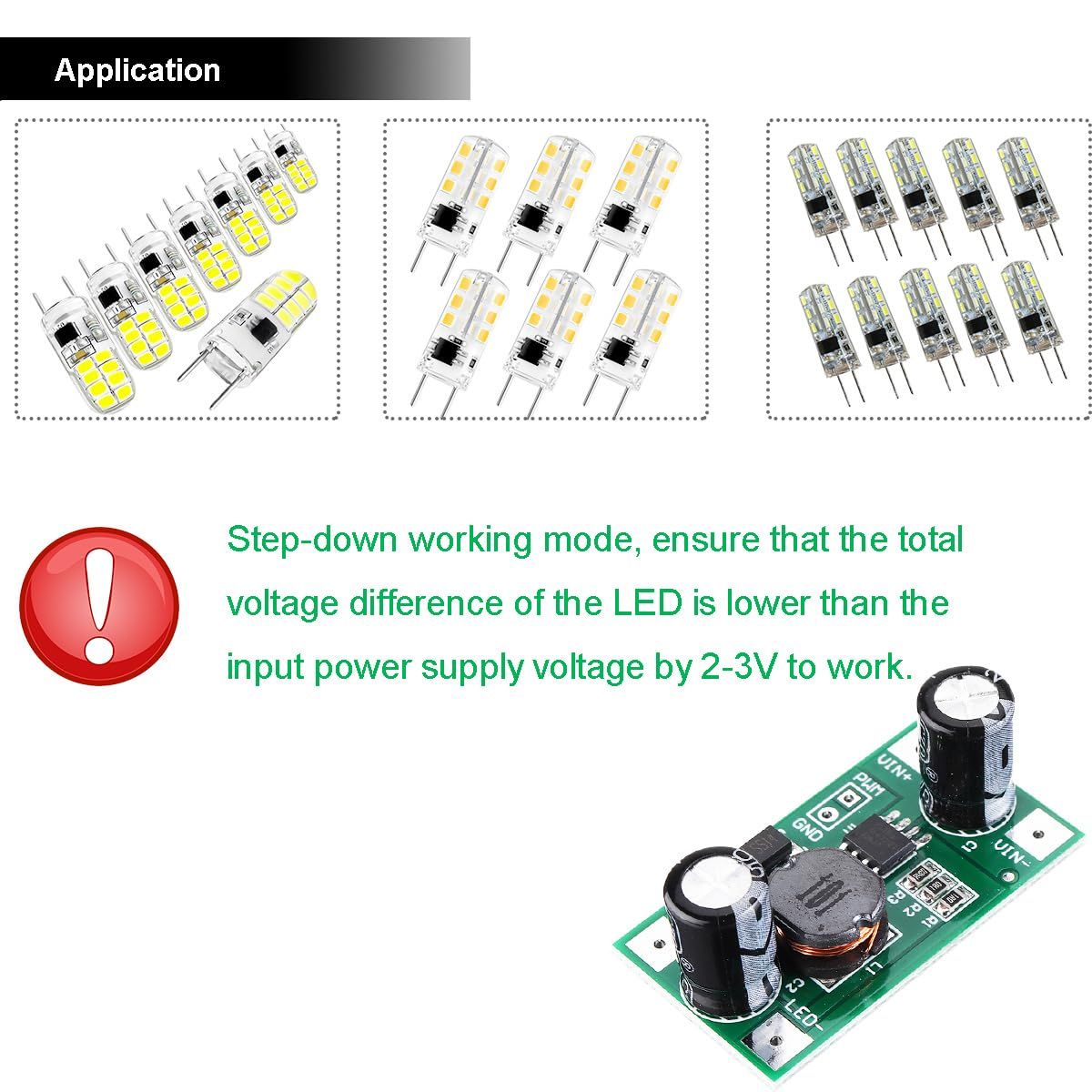 4.降圧動作モードにより、LED が動作する前に、LED の合計電圧差が入力電源電圧より 2 ~ 3V 低くなります。