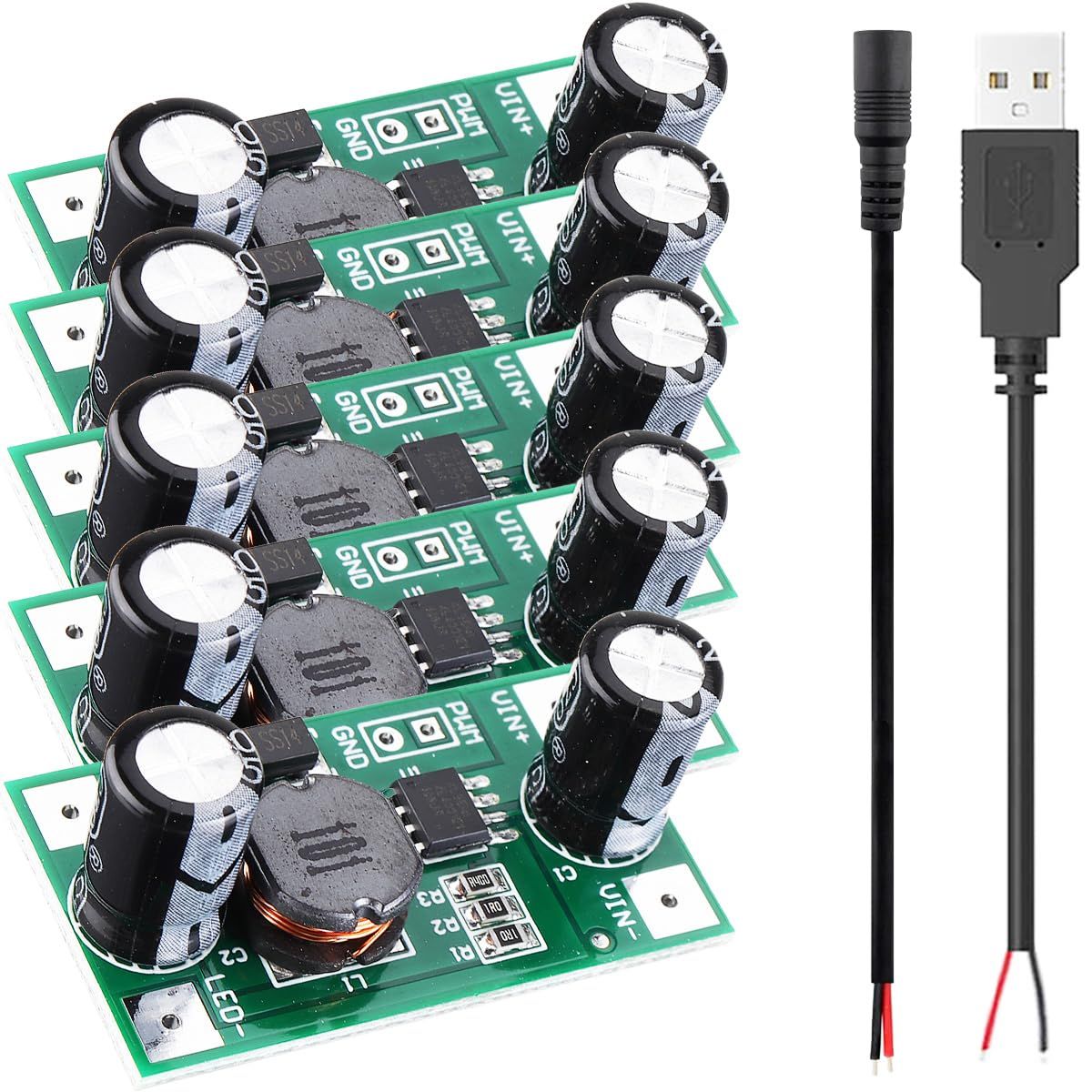 ??【パッケージが含まれています】: 5 × LEDドライバボード;1 × USBオス2極ケーブル;1 × DCメス2極ケーブル。