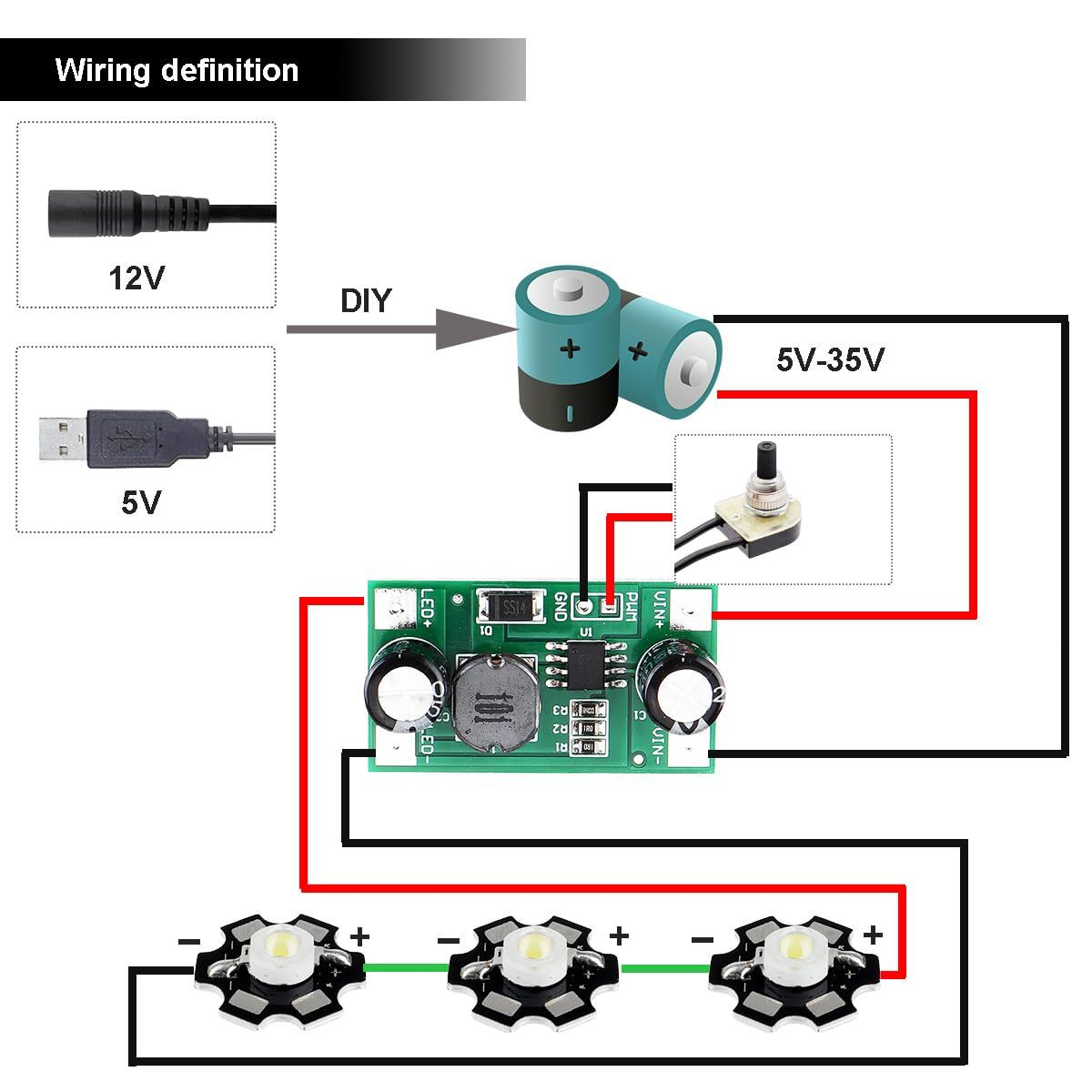 1. 入力範囲: 5-35V。