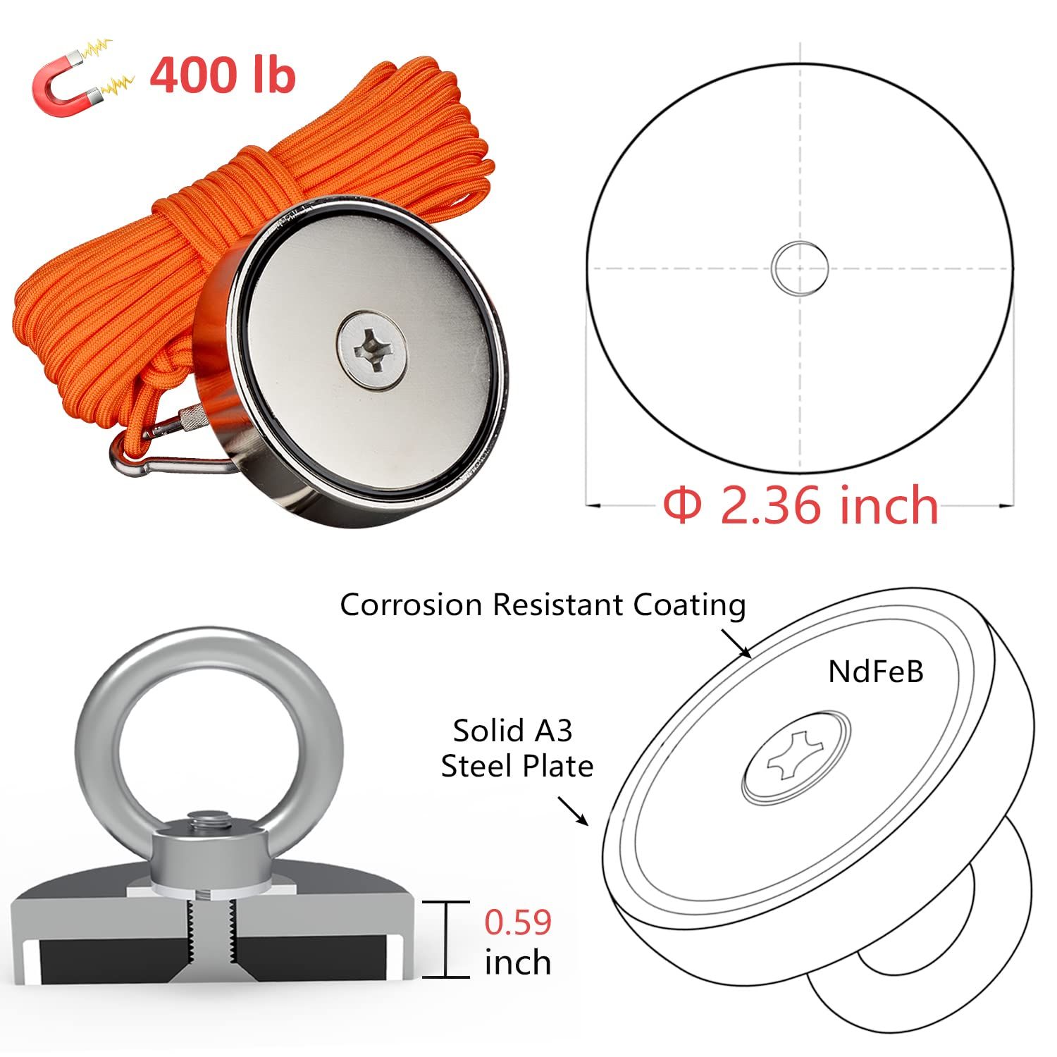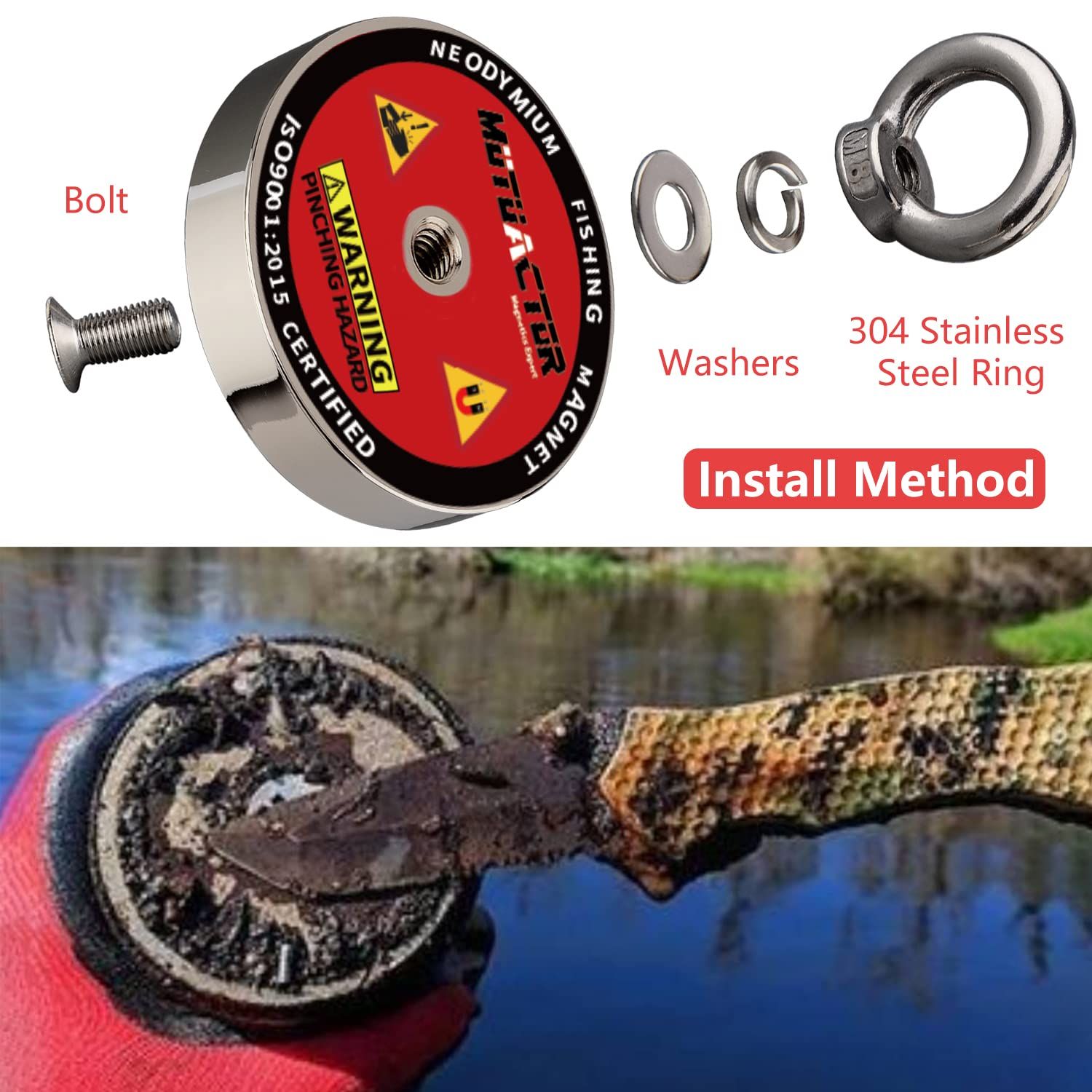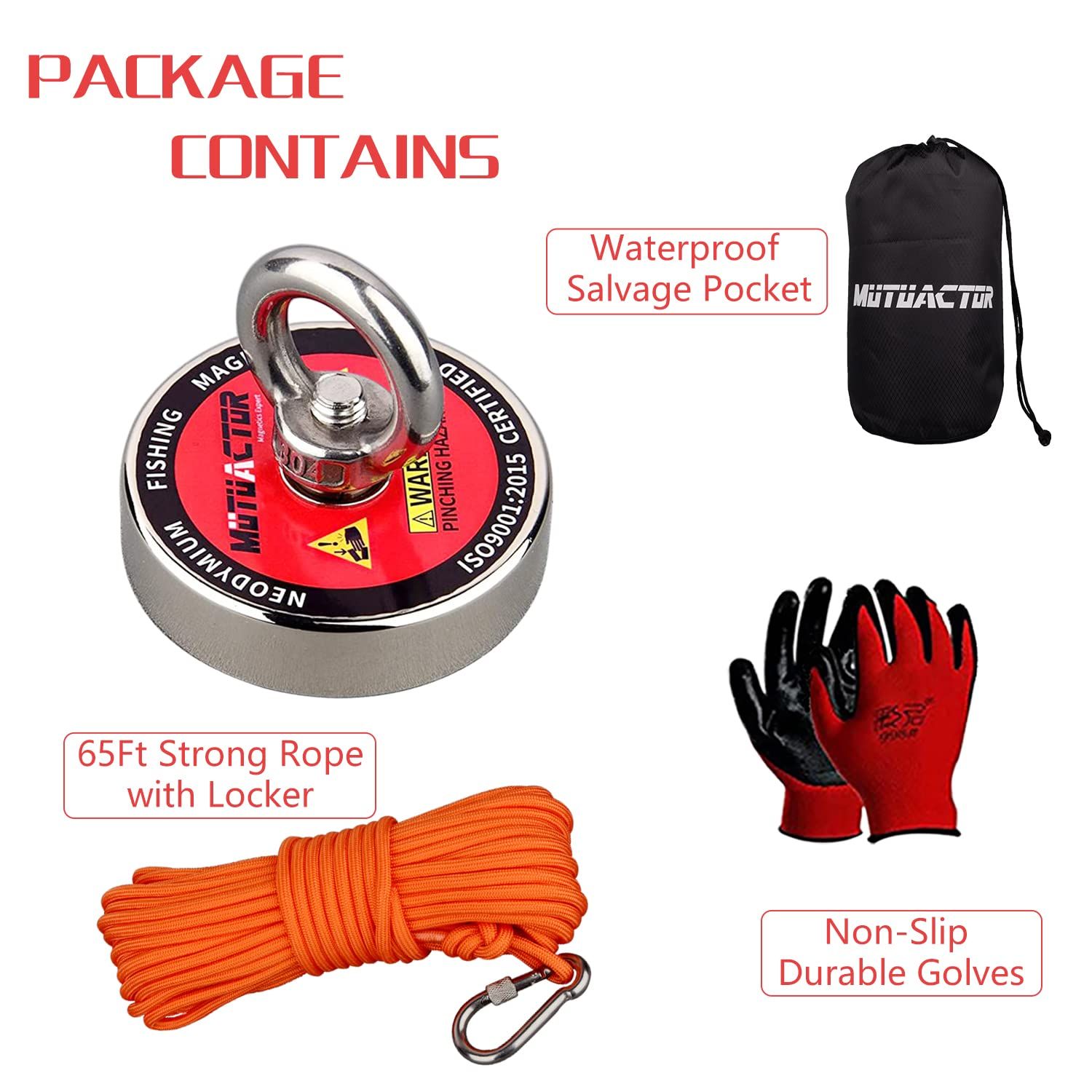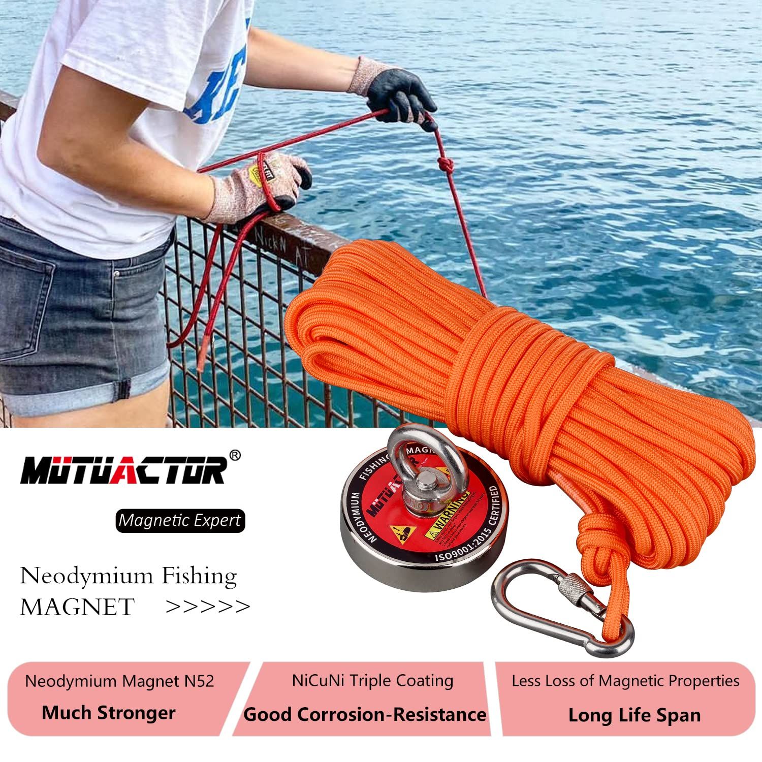 MUTUACTOR 強力な釣り磁石セット180kg引張力、宝探しに使用される強靭なネオジムN 52磁石釣りキット、湖や川の中で刃物の金属工具を取り戻すため