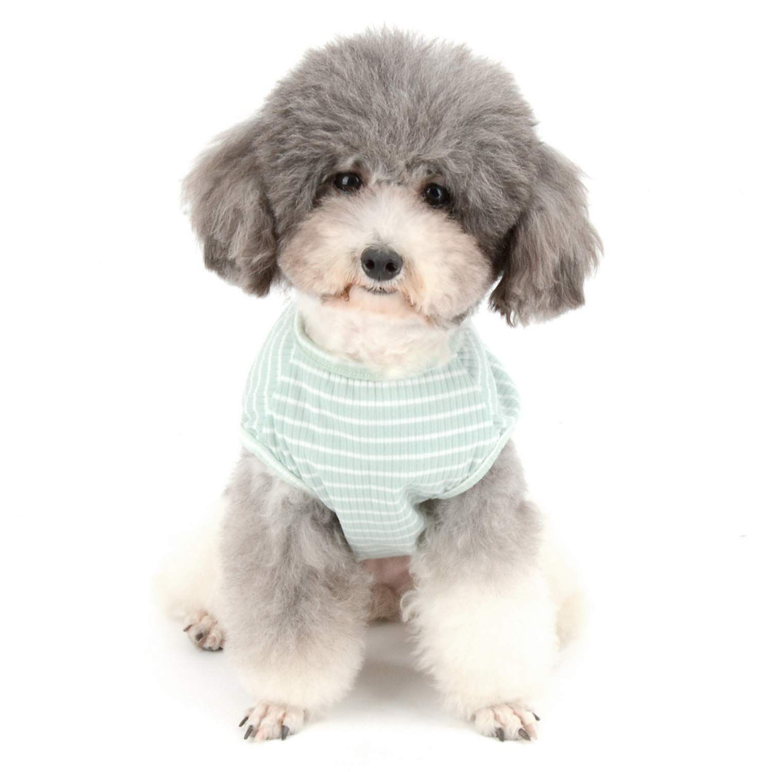 ZUNEA ペット 犬服 Tシャツ 夏 ボーダー柄 ベスト 涼しい 小型犬 柔らかい タンクトップ 猫服 おしゃれ かわいい シャツ 脱毛保護 ひんやり ドッグウェア 子犬 洋服 お散歩 グリーン XL