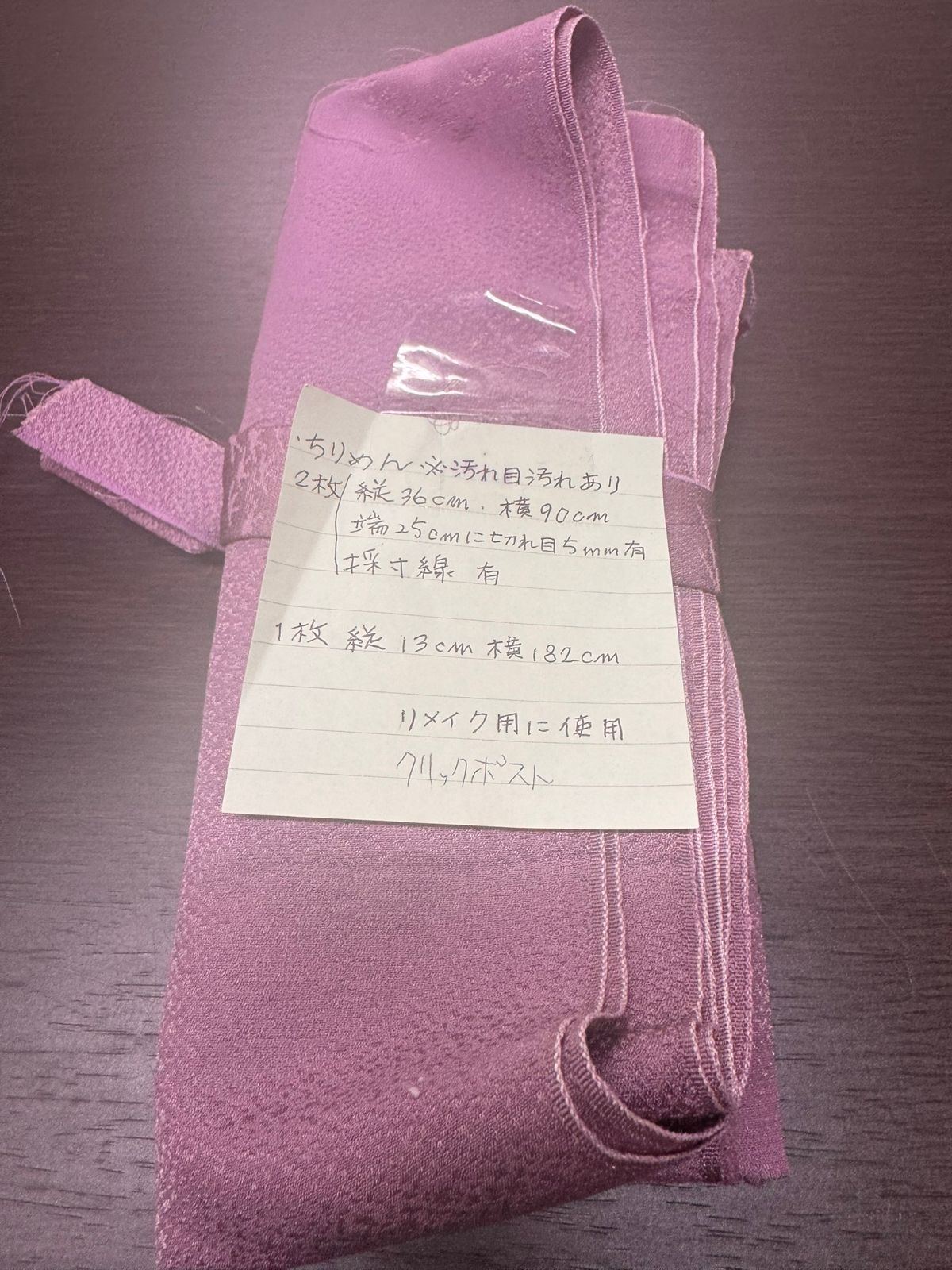 ちりめん 着物用 リメイク用 生地 大判生地 3枚セット はぎれ 薄紫 昭和平成アンティーク ①管2025090270