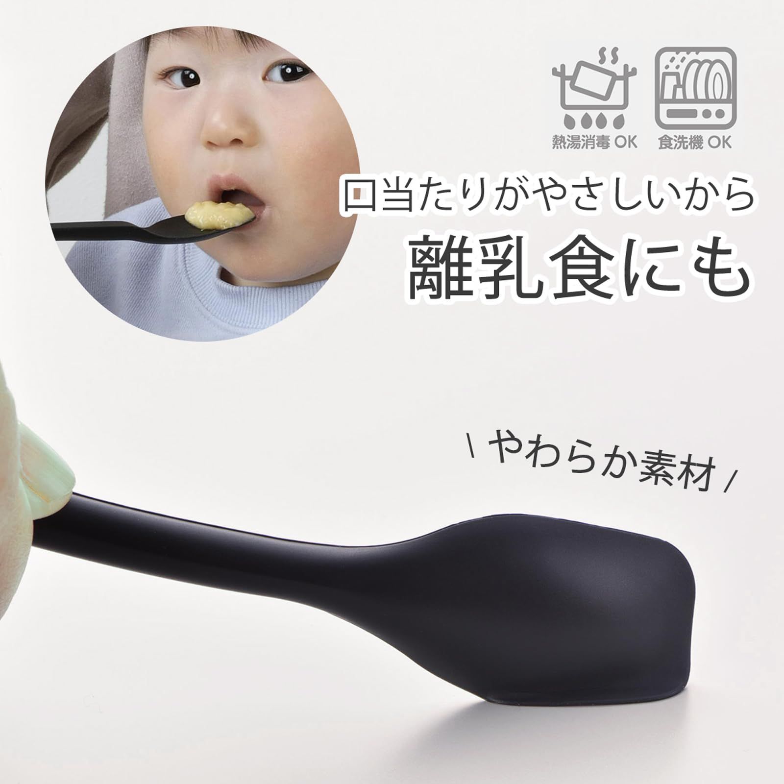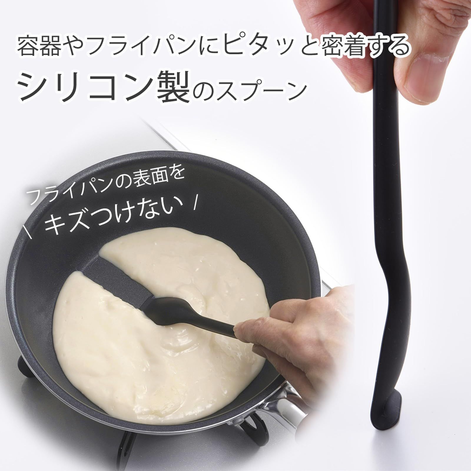 下村企販 小さい シリコン スプーン ブラック 【日本製】 食洗機対応 お手入れ簡単 耐熱 調理 製菓 ほどよくしなる かき集められる 口当たりやさしい 介護・離乳食 スパチュラ シンプル 燕三条 44681