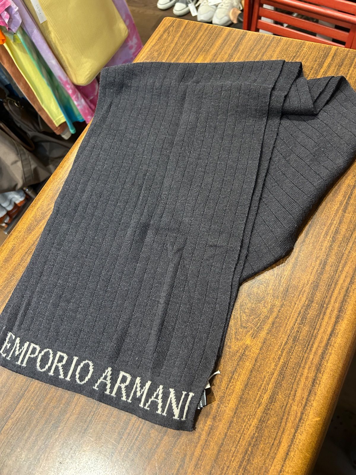 EMPORIO ARMANI ARMANI アルマーニ マフラー グレー ウール アクリル A-1494