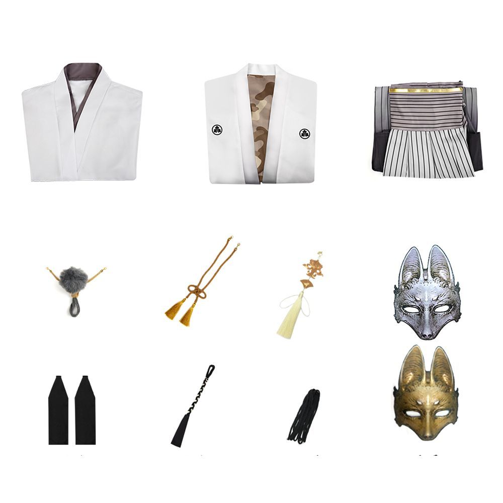 セット:上着、羽織、袴、装飾、手甲、耳飾り、お面